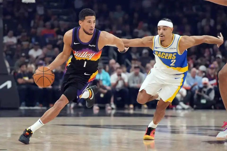 北京时间11月14日,NBA常规赛太阳主场对阵步行者,其中太阳是背靠背第二场。太阳在布克与狄龙出色表现引领下,一边倒碾压步行者,尤其是末节一波20-0攻势扩大40+优势早早奠定胜局,最终太阳133-98大胜步行者豪取5连胜,步行者遭遇6连败,上届亚军步行者1胜11负并列联盟最差战绩。数据统计太阳:布克3记三分33分5篮板7助攻,狄龙3记三分32分,阿伦12分,伊戈达罗17分。步行者:内姆哈德21分9助攻,西亚卡姆19分5篮板,布拉德利10分,内史密斯10分。本场之星布克三节轰下33+5+7数据,尤其第三节狂轰16分,率领太阳大胜步行者豪取5连胜。布克迎来太阳生涯第686场比赛,升至队史第4位迎来里程碑,太阳官方发布海报祝贺。