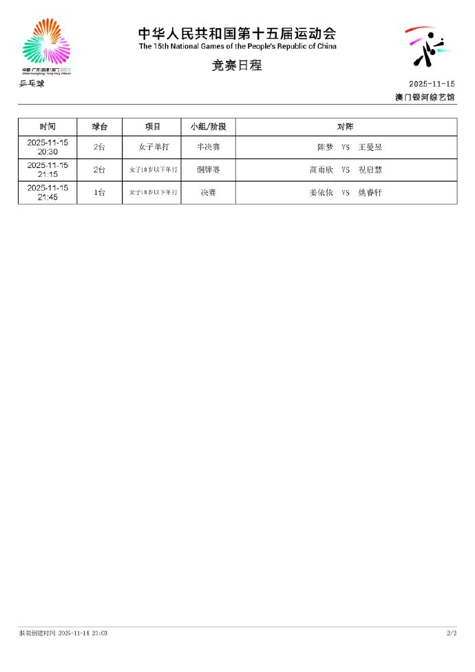 明日赛程及看点10:00早上团体赛,河北女团对阵上海女团辽宁女团对阵澳门女团==