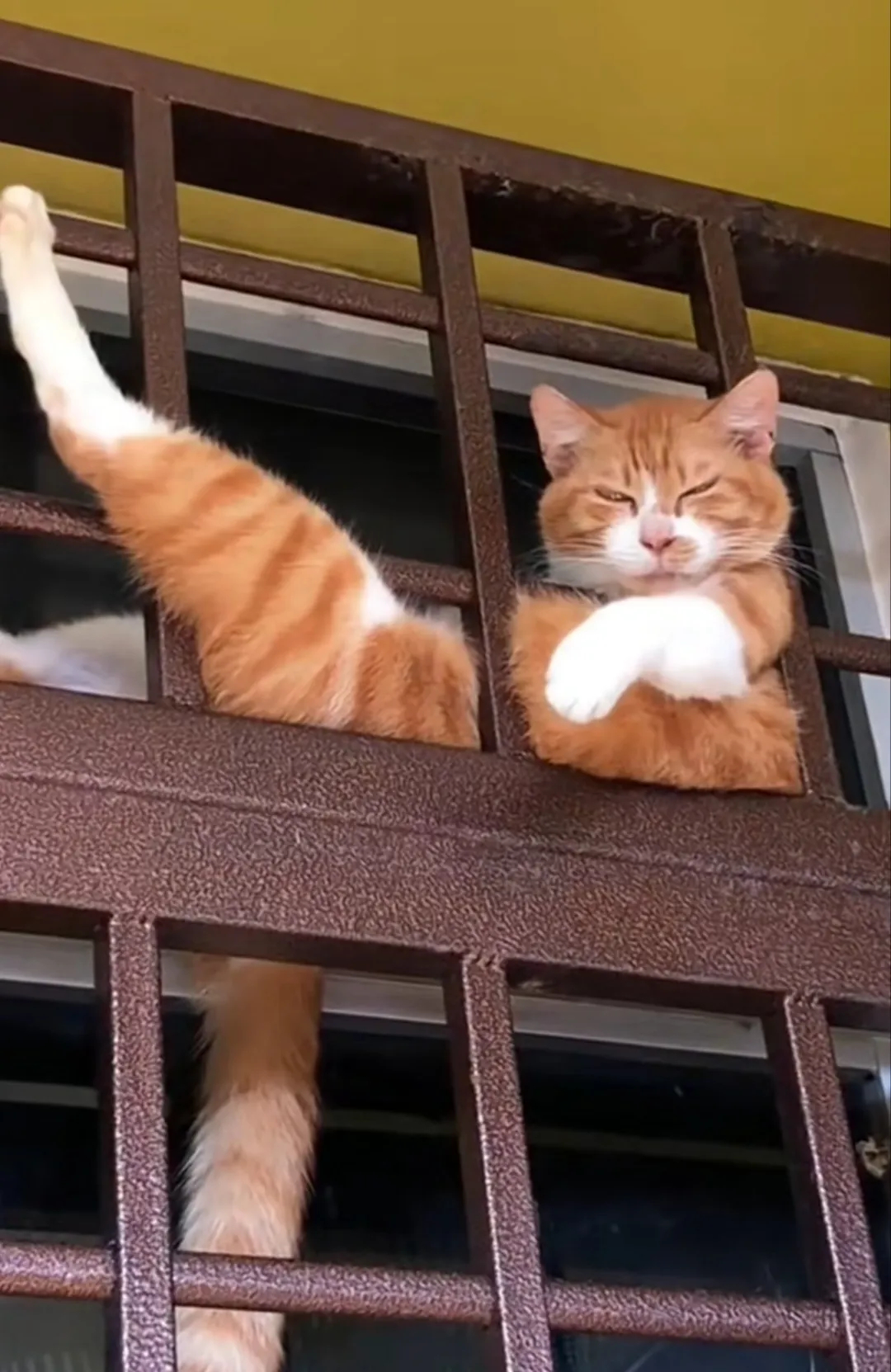 这猫咪功夫练的不错,窗户上都能拉架势太可爱了让人喜欢的猫咪