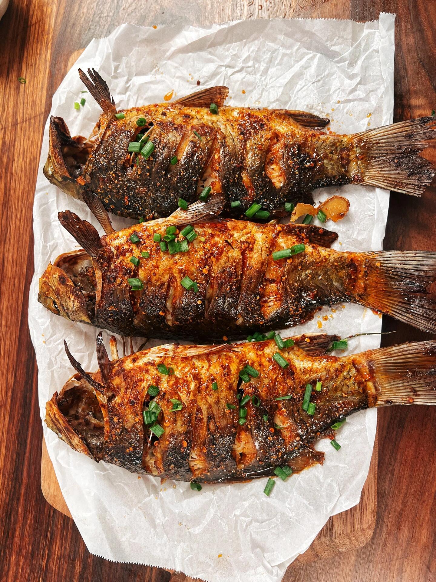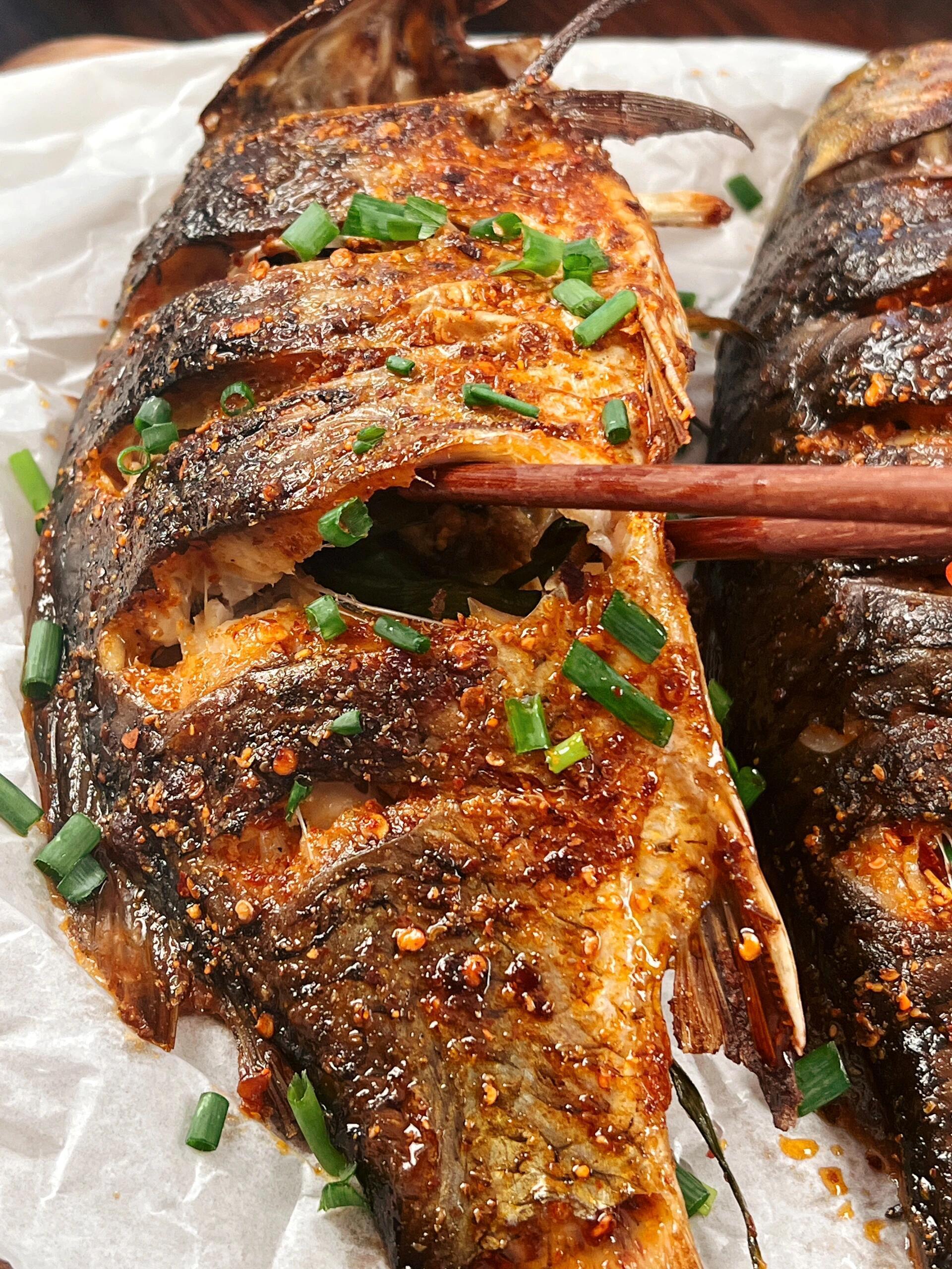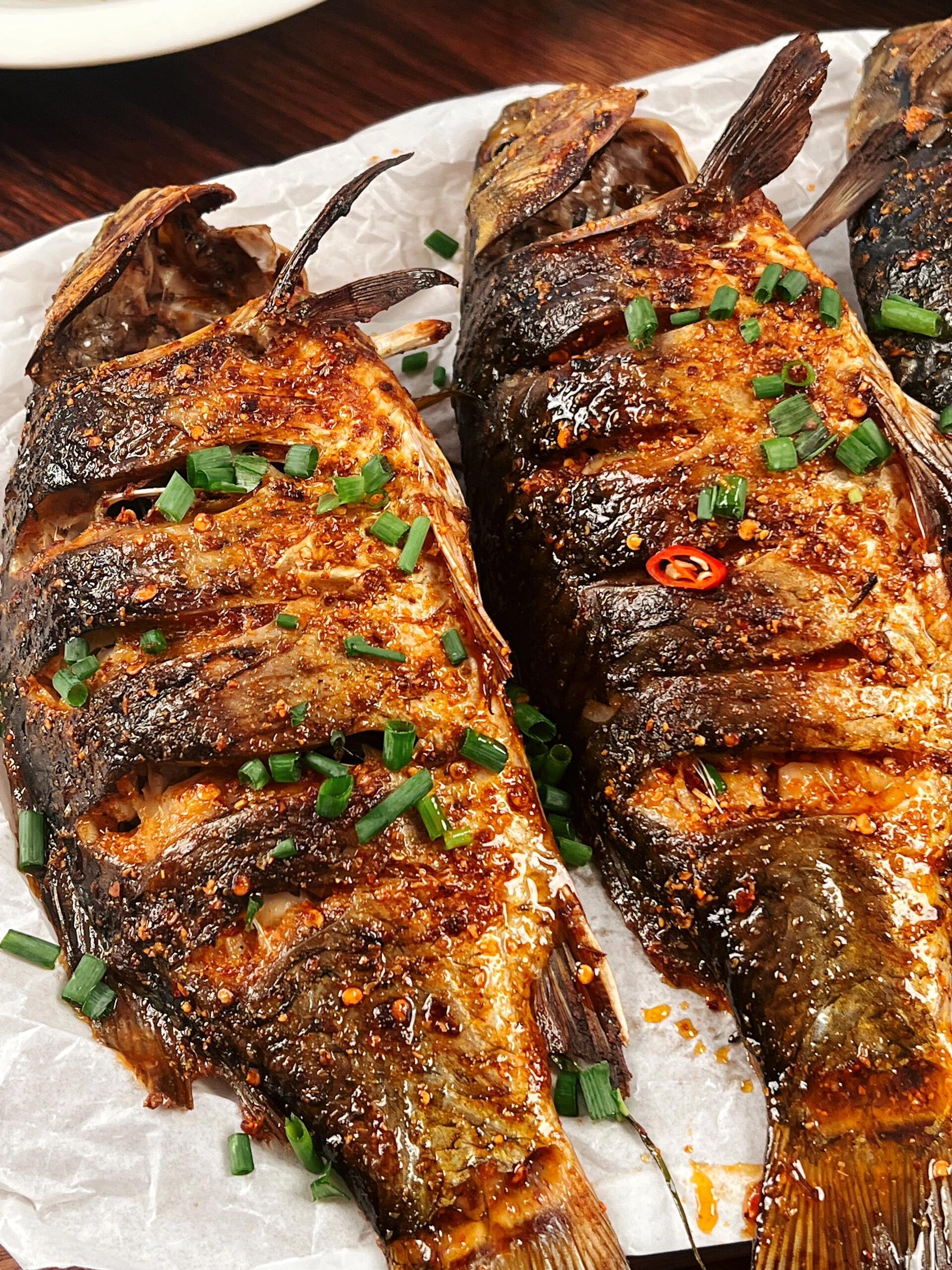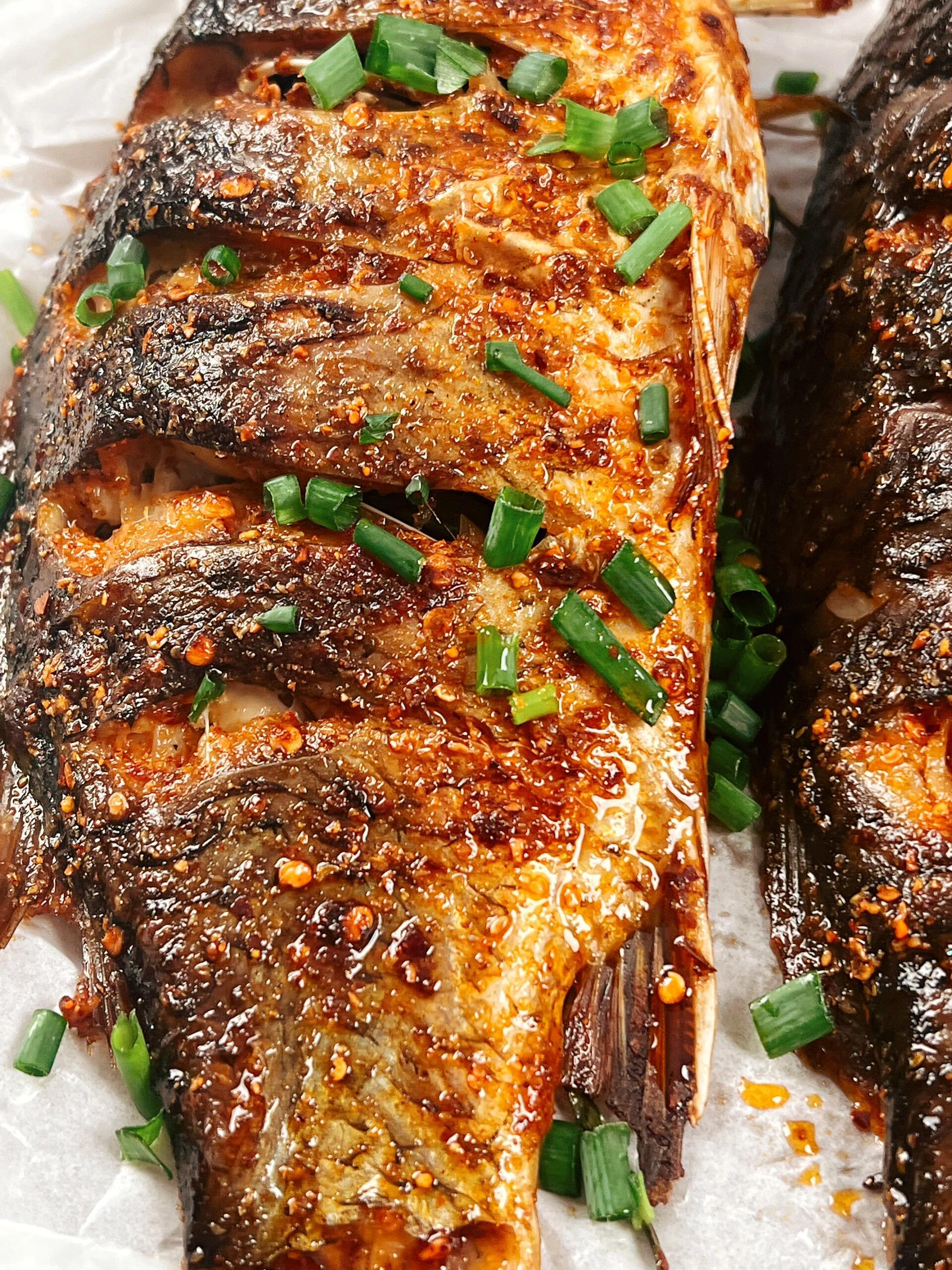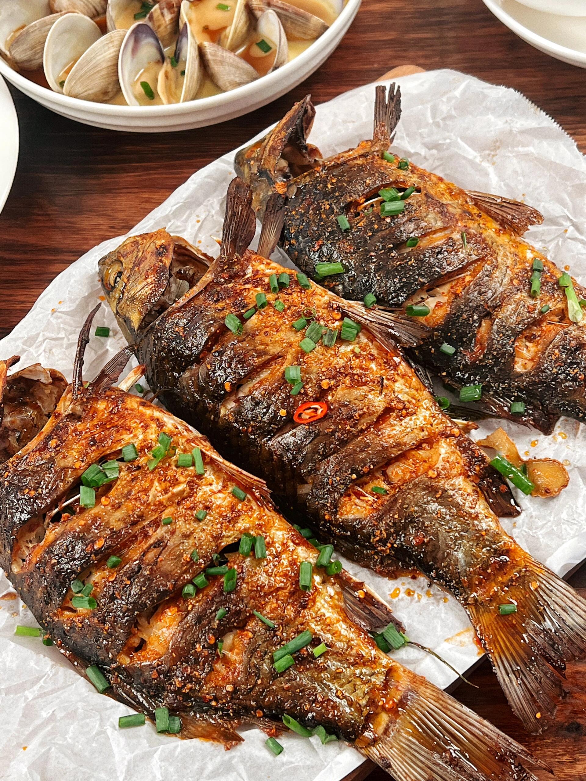 终于实现烤鱼自由啦👏有烤箱的宝子快冲!周末闲暇,不妨动手做这道香到迷糊的烤鱼,味道丝毫不输烧烤店,连平时不爱吃鱼的儿子都抢着吃了一条😆。制作关键划重点:1️⃣腌制要充分:烤鱼腌制时间长些,才能充分入味,让鱼肉每一丝纹理都浸满滋味。2️⃣出炉前加料:出烤箱前,再给鱼刷一遍料汁和油,撒上葱花、芝麻,放进烤箱烤五分钟,这样烤出的鱼外皮酥脆,内里鲜嫩,香气四溢。简单两步,美味即成,快动手试试,开启你的烤鱼自由之旅!
