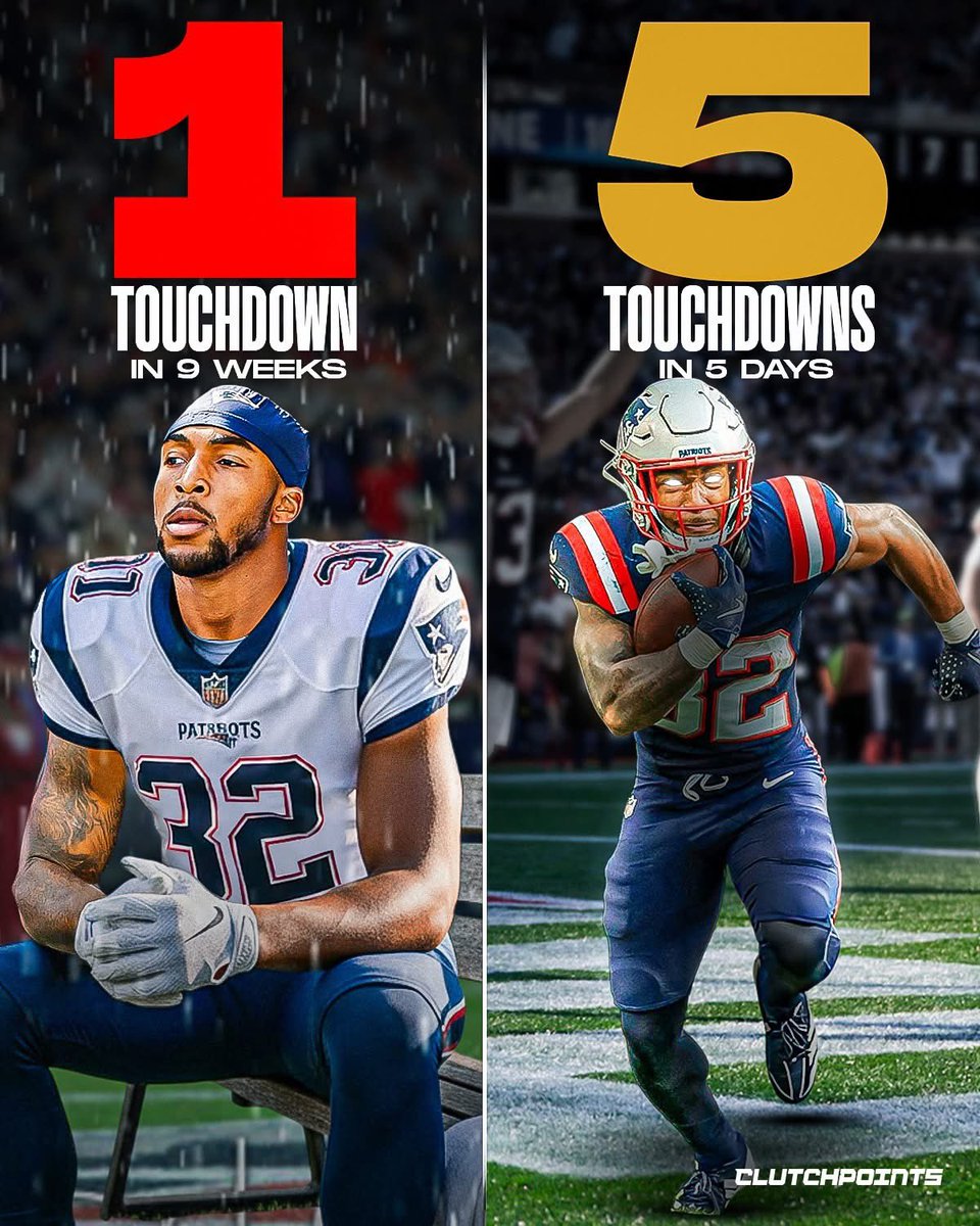 TreVeyonHendersonisofficiallyhere🙌Lastweek:2TDsandapairof50-yarddaggersthatburiedTampaBay.Lastnight:3moreTDsundertheprimetimelights.Beforethat:just1TDbackinWeek4.Butlet'sgetbacktothepresent.Back-to-backexplosions.Back-to-backtone-settingperformances😤Therookietookover.Hisburst,hispatience,hisabilitytoturndaylightintosix…it’sallhittingatonce,andNewEngland’soffensesuddenlylooksevenmoredangerousbecauseofit.ThisisthemomentayoungRBstopsbeinga“promisingpiece”andbecomesaproblem.TreVeyonHendersonhasarrivedandit'sbeenalongtimecoming🔥