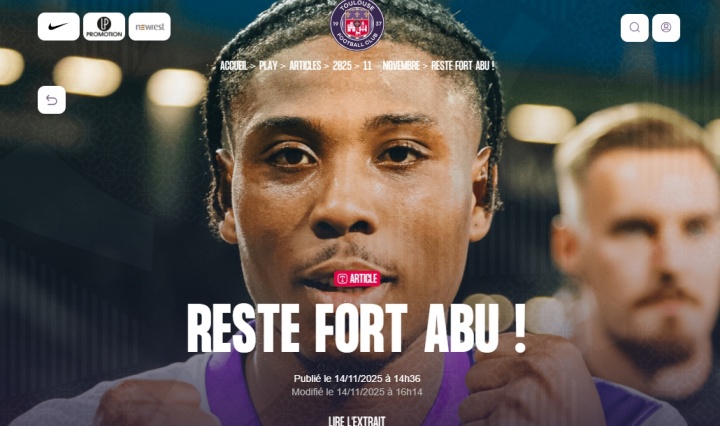 阿布所属的法甲图卢兹俱乐部官方发布公告,称:
