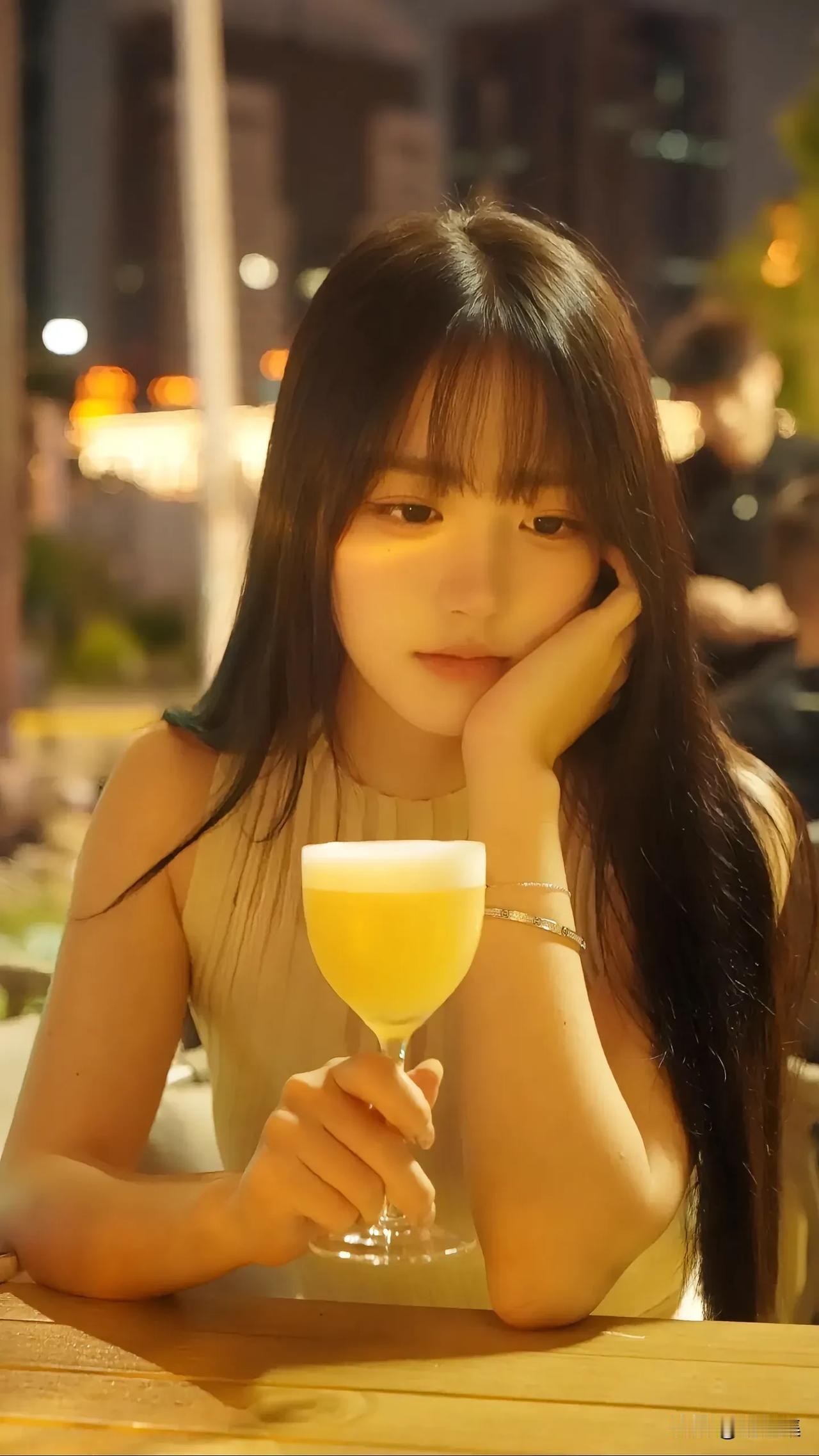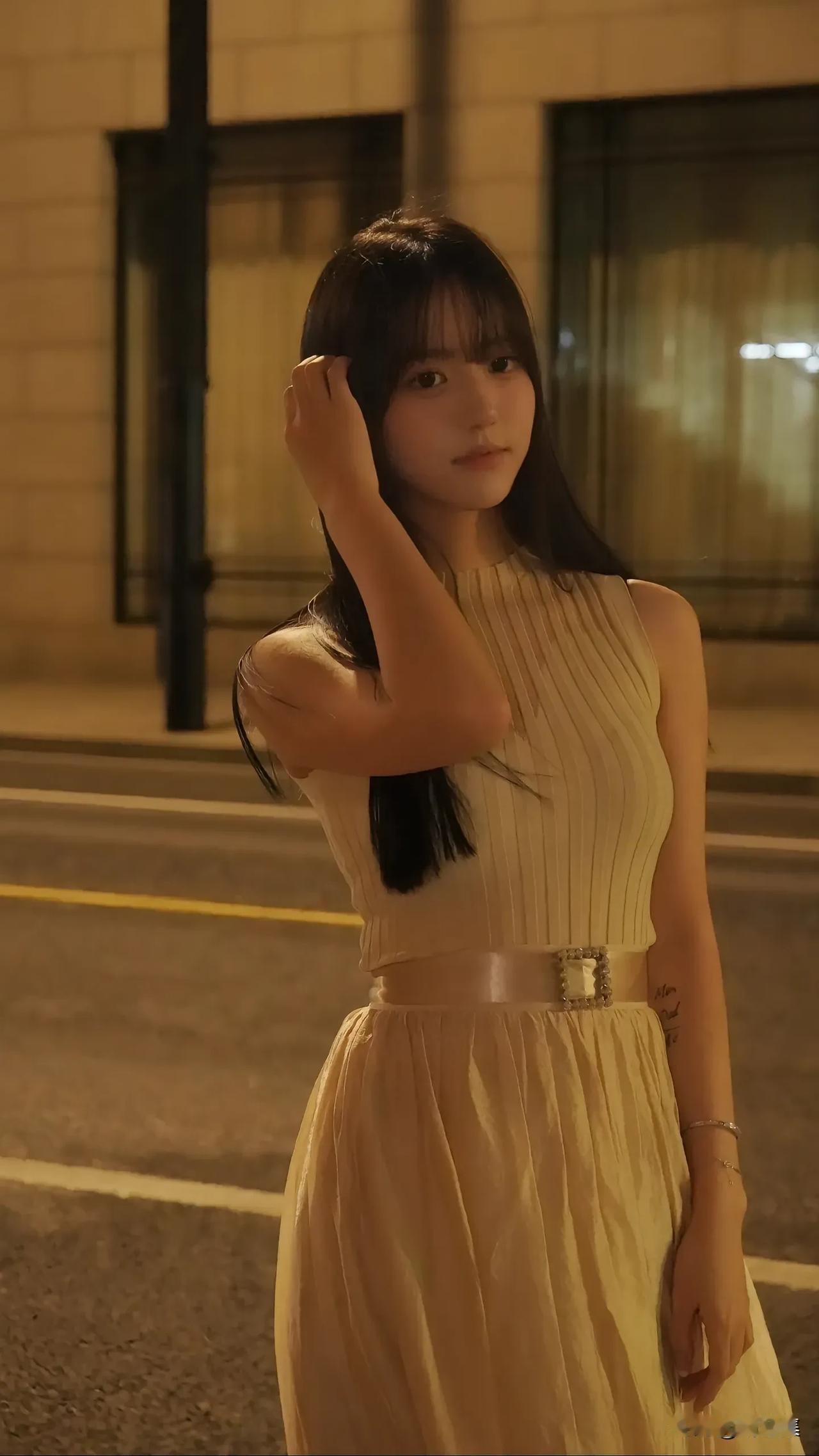 温柔甜美的少女,浅笑盈盈,夜晚的灯光下更显动人。