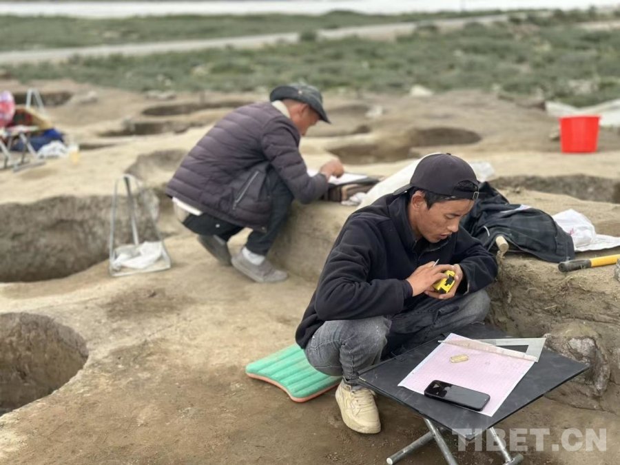 图为达瓦格桑和团队工作人员开展廓雄遗址田野考古发掘工作