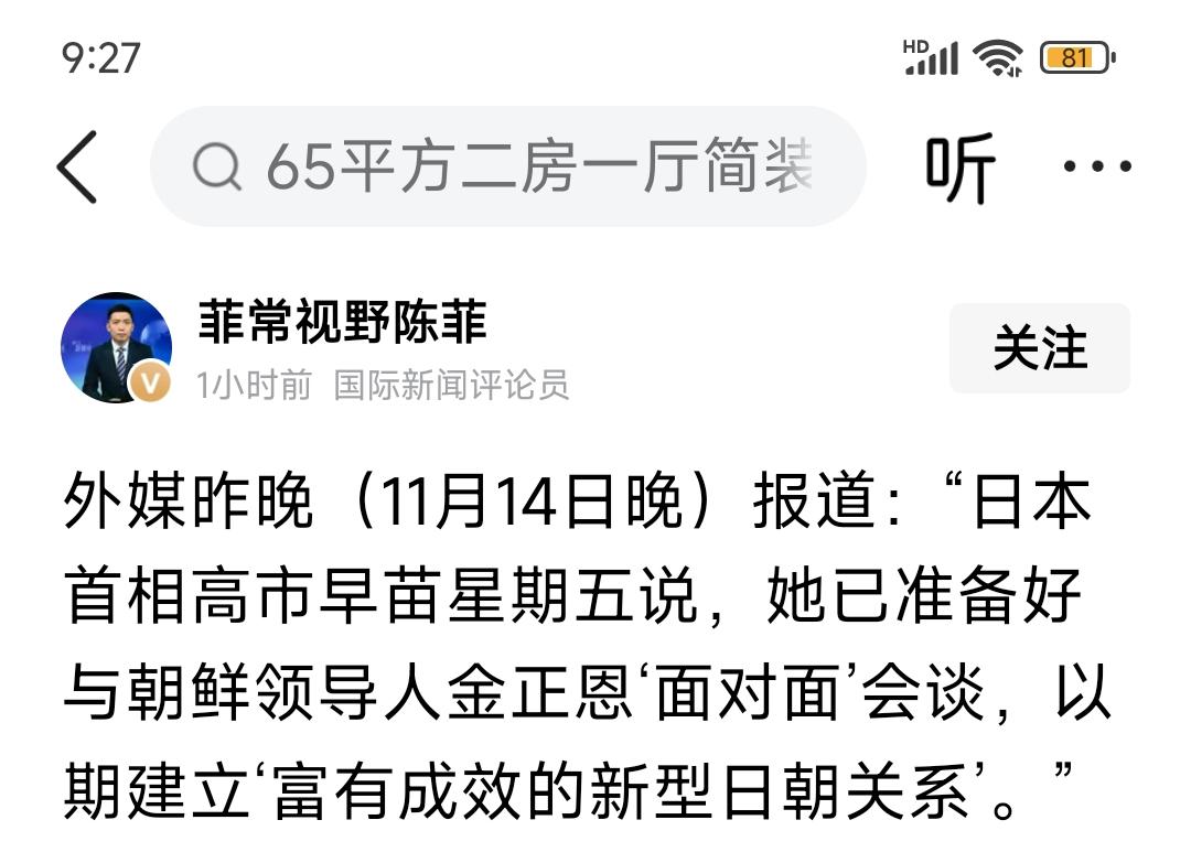 外媒报道,昨天(1月14日),高市早苗表示,她已准备好与朝鲜领导人金正恩“面对面”会谈,以期建立“富有成效的新型日朝关系”。 高市早苗太自以为是了,她在吉隆坡峰会上上演了一场妈妈桑的活剧后就觉得自己是一个可以搞定一切的人了,在冒犯了中国之后又要接近朝鲜啦。 就在12日,在朝鲜举行的一场谴责日本殖民时期暴行的论坛上,一位发言者表示,“日本帝国主义这个老对手对我们人民造成的伤痛,历经百大概都无法愈合,必须用千倍的报复来偿还”。而朝鲜实权人物金与正更是在今年3月就明确表示过:“不会理会并且拒绝与日本的任何接触和谈判。” 高市早苗清楚朝鲜对日本的态度和复仇心理,还恬不知耻的几次三番地表示要与朝鲜进行接触,这副无赖的样子跟她的妈妈桑的样子非常般配。