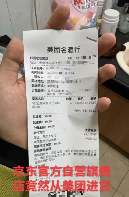 双11刚过,电商平台突然爆出一个大瓜!京东自营旗舰店上买的五粮液,却是从美团名酒行上进的货,到底是啥事?   谁能想到,顶着“假一赔十”金字招牌的京东自营,会从美团渠道调货卖五粮液?   2025年11月,双11购物热潮的余温还未消退,一位消费者的购物经历就在网络上引发了轩然大波。   原本冲着京东自营的正品保障下单,拆开包装却发现一张美团名酒行的发票,这波操作让不少人直呼“意想不到”。   这位消费者的购物过程并不复杂,在五粮液官方授权的京东自营旗舰店下单后,满心期待收到正品白酒,结果赠品袋里的意外发现打破了平静。   发票上清晰的“美团名酒行”字样,直接揭露了货源真相——京东自营卖给消费者的五粮液,竟是从美团渠道进的货。   发现问题后,该消费者第一时间联系了京东客服,随后又发起了平台投诉,可几番沟通下来,事情始终没有取得实质进展,维权之路陷入僵局。   在很多人的固有印象里,美团上的白酒价格偏低,总让人忍不住担心品质问题,不少消费者即便心动也不敢轻易下单。   反观京东自营,凭借多年积累的口碑和“假一赔十”的郑重承诺,成为不少人购买高端白酒的首选渠道。   正是这份信任,让消费者毫不犹豫地选择在京东自营下单,却没料到会遇到这样的跨界货源。   而这场意外,也让大家重新审视起美团闪购的白酒品质,京东自营的选择,无形中给美团做了一次有力的保真背书。   能被以品控严格著称的京东自营选中,美团闪购的白酒保真体系其实早有准备。   对于高价值白酒,平台实行售前“实拍返图”制度,发货前会专门提供实物照片和专属编码,让消费者提前确认货物情况;   售后方面,不仅承诺“假一赔十”,还要求商家缴纳正品保证金,从制度上降低消费风险;   就连配送环节也暗藏玄机,高价白酒会采用“安心包”和“安心扣”的特殊包装,从物理层面杜绝调包可能。   这些全方位的保障措施,正是京东敢于从美团调货的核心原因。   再看京东这边,其自营模式一直以自建仓储为核心优势,通过集中采购降低商品成本,但背后也背负着不少看不见的运营开销。   仓储租赁、货物分拣、跨区域运输等环节,都需要持续投入大量成本。   而美团闪购采用的即时零售模式,依托本地优质经销商供货,既省去了长途运输的麻烦,又能保证价格优势,恰好弥补了京东自营在部分区域的货源缺口。   在双11这样的购物高峰期,缺货情况时有发生,从美团调货成为兼顾品质与效率的务实选择。   其实这种跨界调货并非京东的特例,而是电商行业在低价保真前提下的普遍现象。   近期中石化易捷与淘宝闪购的战略合作,也印证了即时零售与传统电商互补的行业趋势。   大家没必要过度指责京东,从商业逻辑来看,选择保真且低价的进货渠道,既符合平台利益,也能让消费者享受到更实惠的价格,本身并无过错。   京东今年更是投入超5000万元打造名酒鉴真体系,在全国八大仓部署鉴真中心,对茅台、五粮液等名酒实现100%事前检查,这样的投入也能看出其对正品保障的重视。   这场看似意外的货源争议,最终没有变成品质危机,反而让消费者看到了电商行业的资源整合逻辑。   京东的品牌信任与美团的即时供应链形成互补,既保证了商品品质,又优化了配送效率,本质上是行业资源优化配置的体现。   对于普通消费者来说,与其纠结货源来自哪个平台,不如关注平台是否有完善的保真措施和售后保障。   毕竟在成熟的市场环境中,优质资源的相互流动,最终受益的还是广大消费者。   京东自营旗舰店五粮液居然跑去美团进货,这看似颠覆认知的操作,实则是行业发展的必然结果。   当不同平台的优势得以互补,当保真成为所有渠道的共同底线,消费者才能真正实现“闭眼买”的购物体验,这或许就是这场跨界争议背后最有价值的行业启示。   今天的分享到这里就结束了,大家对此事有何看法,欢迎在评论区留言和讨论,感兴趣的可以点击头像加关注,我将每日更新优质内容,我们下期见。