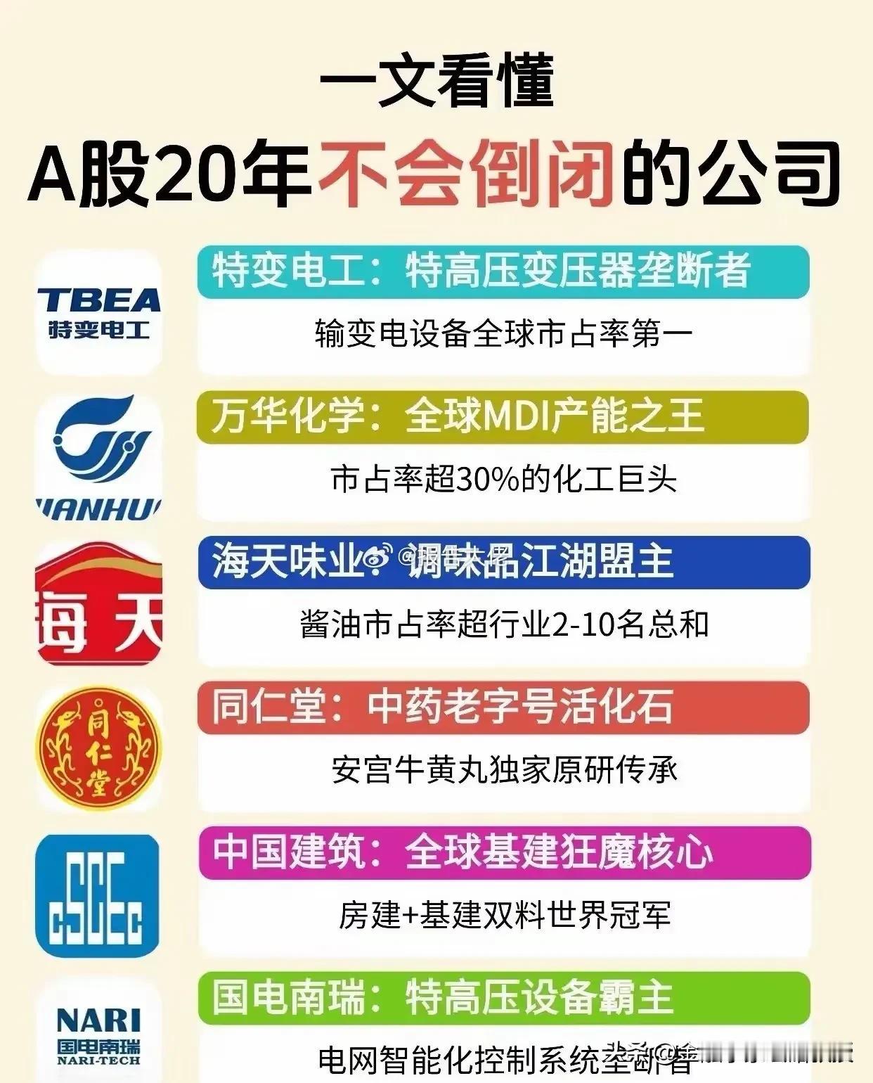 不知道是哪位网友总结的A股20年不会倒闭的公司,现在随着农业银行股价节节攀升,其市值已经成功超越“宇宙第一行”工商银行0.03万亿,这也说明了没有刻舟求剑的经久不衰,后来者永远有机会,不管是传统行业还是新兴行业,在长期赛道上唯有不断创新成长,方能长青。