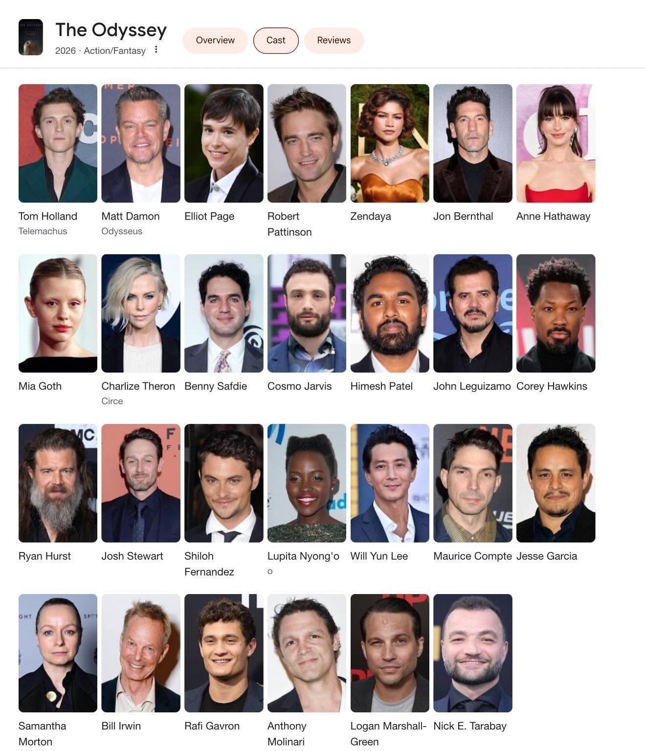 诺兰执导的《奥德赛》放出更多物料。明年最值得的期待的电影,2026年7月17日上映。马特·达蒙饰演奥德修斯荷兰弟饰演奥德修斯的儿子忒勒马科斯安妮·海瑟薇饰演奥德修斯的妻子佩涅罗佩,米娅·高斯饰演宫廷侍女梅兰托