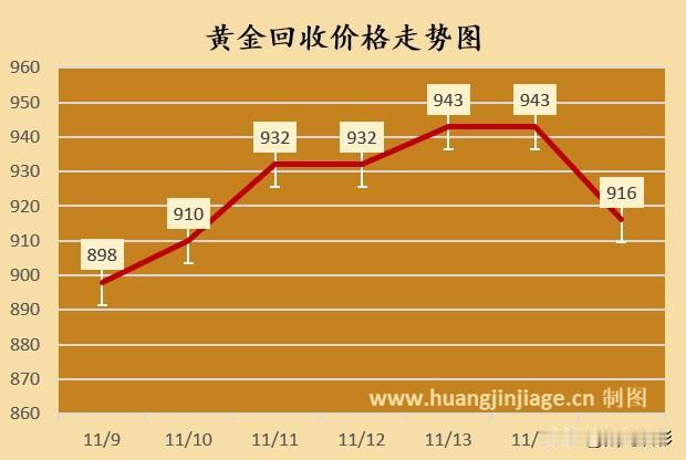 最新消息! 黄金回收价格出炉! 2025年11月15日,今日黄金行情, 现在黄金回收价格936元/克, 22k黄金回收价格824元/克, 18k黄金回收价格679 元/克, 14k金回收价格525元/克。 温馨提示:回收黄金注意三点, 第一:不存在折扣费和磨损费, 第二:不分品牌,只看含金量, 第三:避免清洗后再称重。 注:黄金价格是实时变化的,回收金价仅供参考,具体以结算价格为准! 理财有风险,投资需谨慎! 黄金参考 金价回收行情 黄金售卖价格 黄金回收价攀升 黄金一克720 黄金价格680 黄金回收价
