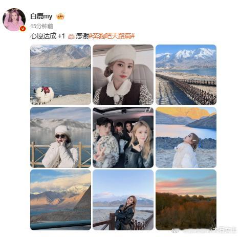 白鹿感恩《奔跑吧》天路篇收官,一句 “心愿达成 + 1 感谢”,满是对节目的认可