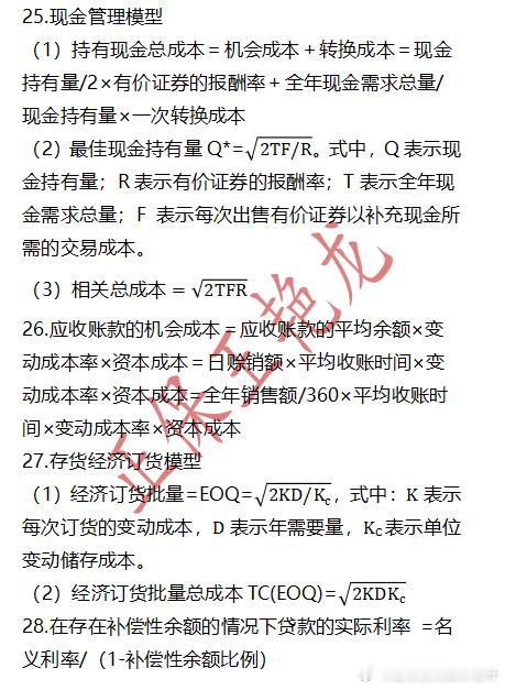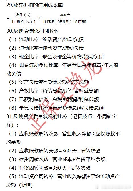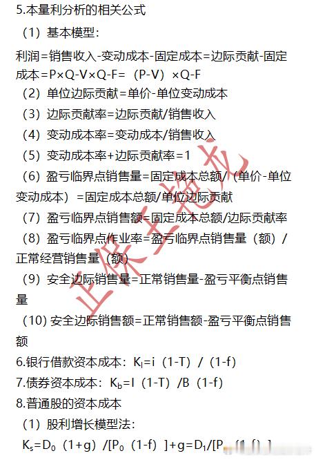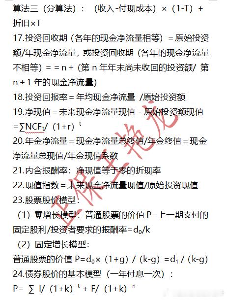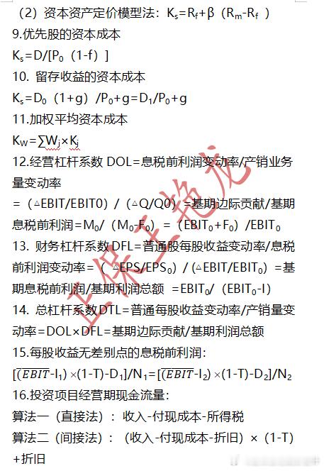 2025年税务师《财务与会计》财务管理部分公式大全。