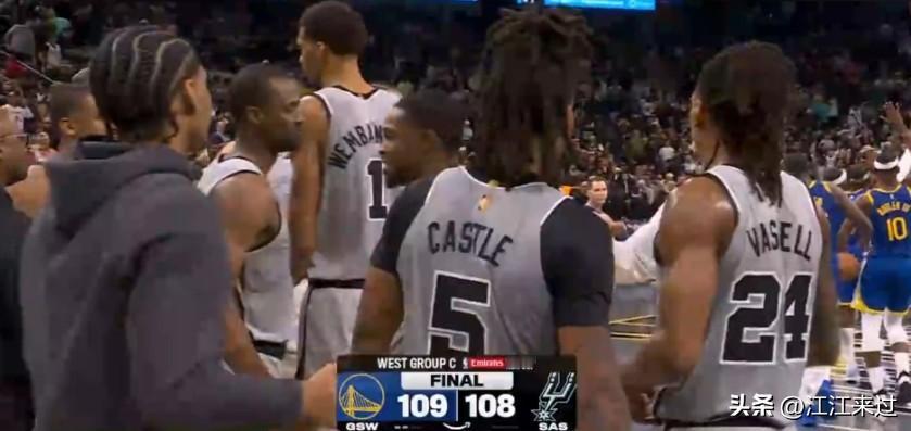 库里49分,连爆两场!勇士109比108双杀马刺!彻底成为马刺队的苦主! 双方一个库有引力、一个班有引力! 巴特勒关键上篮被文班亚麻无情封盖!库里造犯规两罚全中!反超比分!最后一攻关键时刻福克斯跳投不中,马刺主场再次被金州勇士击败! 勇士队:巴特勒21分8板! 马刺队:文班亚马26分12板4助攻! 福克斯24分4篮板10助攻!投失关键绝杀跳投!