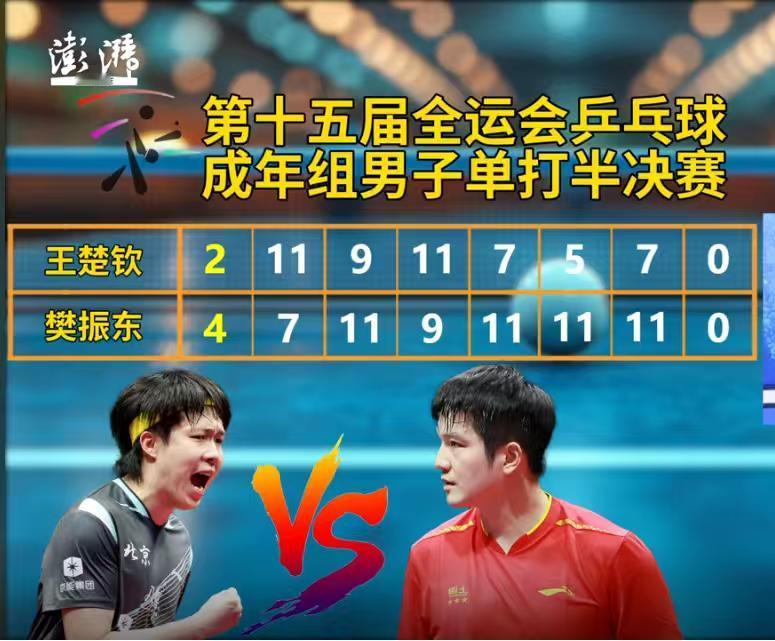 樊振东赢了,这个结果跟我预测的相差不大。因为从过往两人交手记录来看,本身就是樊振东赢面更大。据说过去的32局,樊振东赢了27局,王楚钦赢了5局。眼下全运会上,两人的交手结果已经出来了,樊振东4:2赢下了这场比赛。个人认为,这两人都是我们乒乓球队伍中的佼佼者,他们都值得我们去喜欢和赞美。就拿今天这场赛事来说,不说输赢,他们的确为我们呈现出了一场精彩绝伦的比赛!