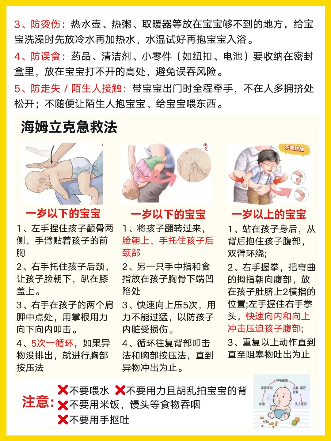 🔴防烫伤:热水壶、热粥放宝宝够不到的高处;洗澡先放冷水再加热水,试好温度再抱娃进浴盆