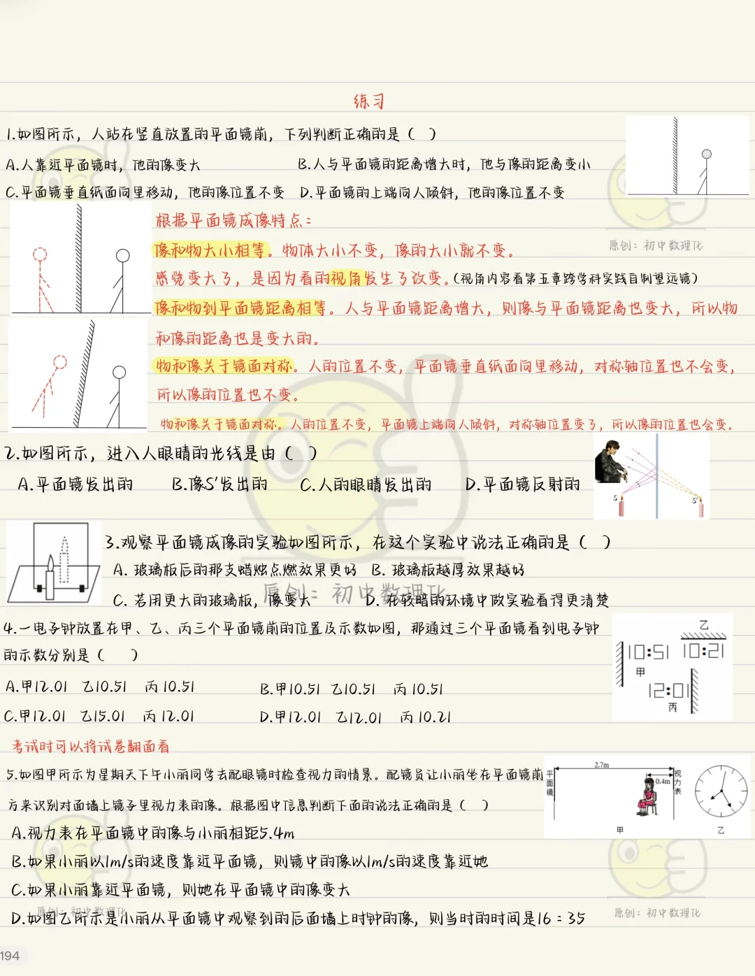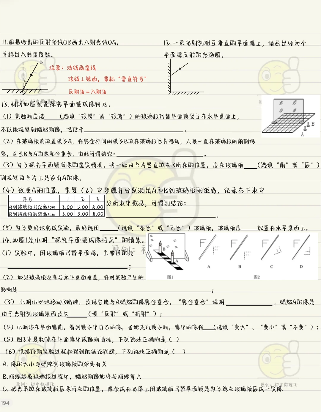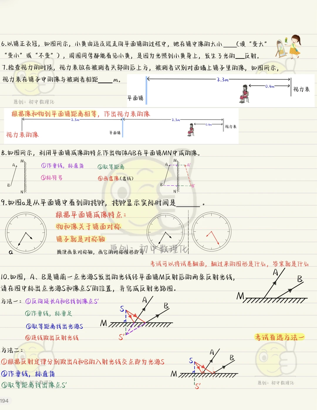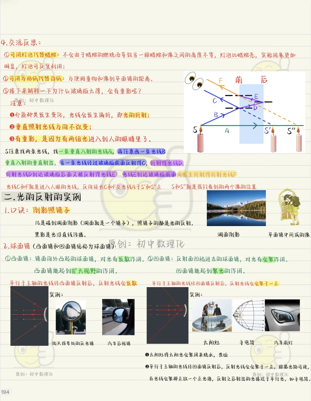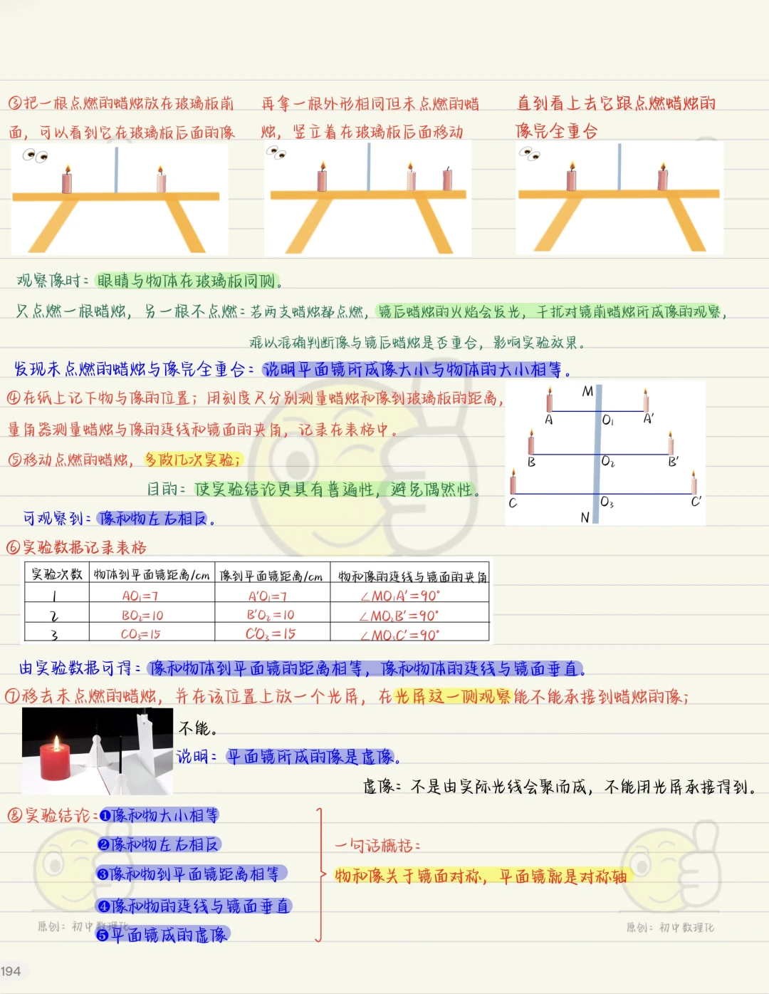 平面镜成像 光的反射 光现象 八上物理笔记 八上物理 初二物理