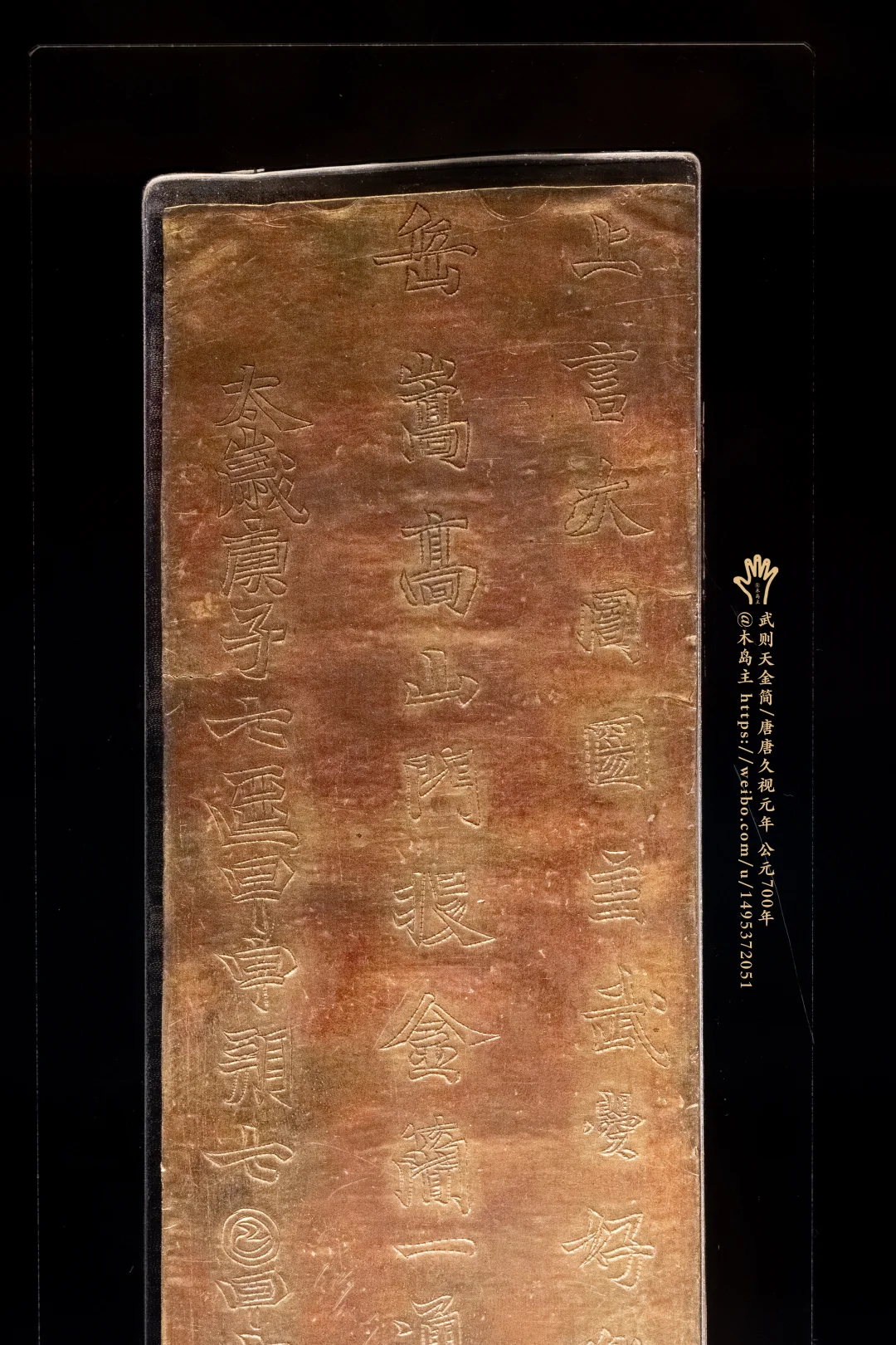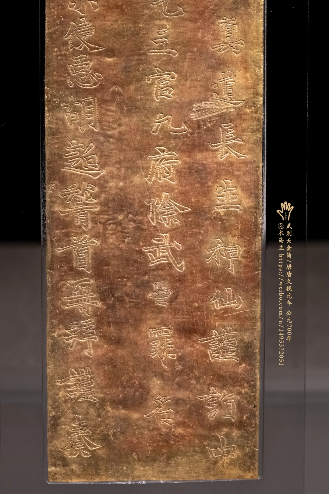 唐朝诡事录里出现的武则天的金简,1982年登封县嵩山峻极峰北侧发现。金简重223.5克,以纯度90%的黄金制成,上刻双钩铭文63字: “大周国主武曌,好乐真道,长生神仙,谨诣中岳嵩高山门,投金简一通,乞三官九府,除武曌罪名。太岁庚子七月甲申朔七日甲寅,小使臣胡超稽首再拜谨奏。” 意为:武则天虔诚信奉道教真理,渴望长生不老,故特派小使臣胡超到嵩岳天门投递金简一通,乞求三官九府免除其罪名。 金简上有五个武则天自造的新体字,分别是国、曌、日、月、臣。该金简是研究武则天晚年思想行为的珍贵实物资料。