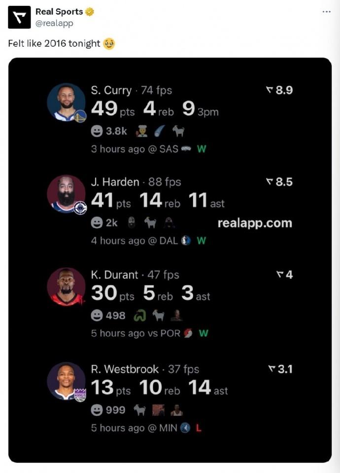 老球迷泪目了! 库里:49分4篮板,9个三分 哈登:41分14篮板11助攻 杜兰特:30分5篮板3助攻 威少:13分10篮板14助攻 同一天的比赛,几个老将仍然在发光发热,哈登和威少都拿到了三双,杜兰特轻松取下30分,库里爆炸输出49分,9个三分杀死马刺。 这场面让人想起雷霆三少大战勇士的画面,只不过如今库里还在勇士战斗,雷霆三少早已辗转多支球队,有的人还是老大,有的人是副手,有的人已经成了底薪球员。 距离那个把杜兰特打成勇士球员的系列赛,已经过去快10年了....
