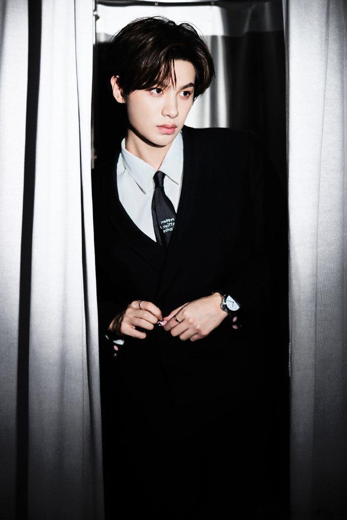 黄明昊粉色袖扣,黄明昊黑西装粉色花朵扣,满分帅气的小贾上线啦,期待住和你的现场的见面啦~