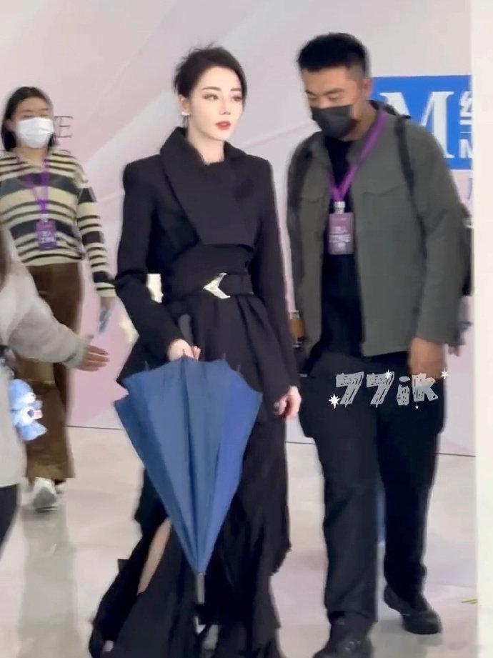 迪丽热巴黑高定抓发look,迪丽热巴出场即惊艳,谁懂这个热巴手拿黑伞出场的瞬间就