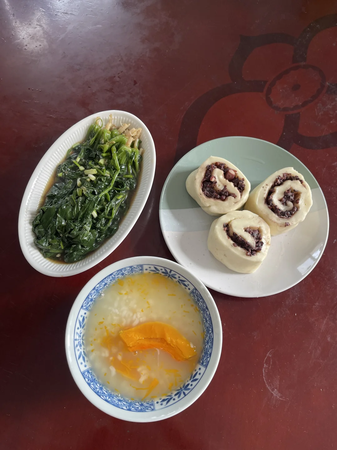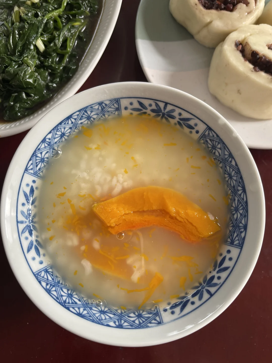 嗨👋互联网闺蜜们 我是热爱食养文化的樂妈👩 自学《黄帝内经》 挑战和宝宝一起中医食养好月卑胃100天打卡✅ 养胃早餐🥣:南瓜粥➕杂粮馒头➕凉拌菠菜 营养:维生素C2片 今日状态✅ 🟢胃:正常 🟡脾:虚(舌苔厚白) 饮食干净,胃舒服[害羞R]