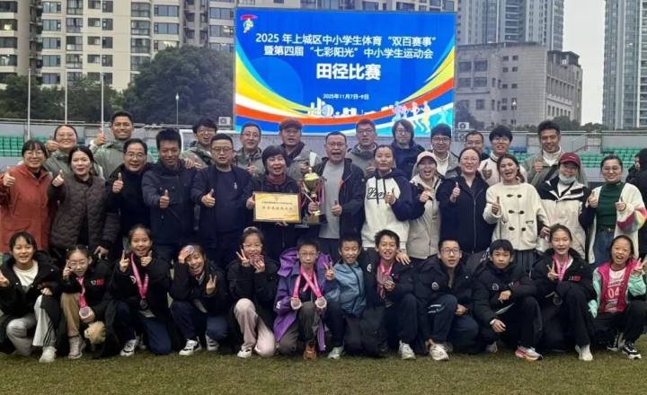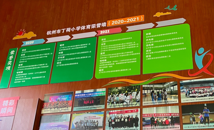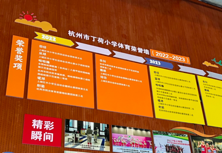 也是从那一年开始,学校的体育成绩全面开花,学校的足球、篮球、啦啦操、毽球、射箭、乒乓球……各个都在区里拿到靠前的名次。学生的体质健康素质测试也常年名列前茅,2023年代表上城区参加杭州市体育抽测,三年级获全市第一,六年级获全市第二。