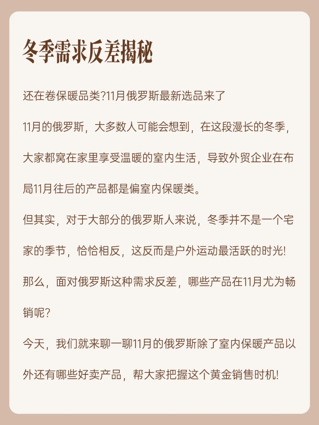 俄罗斯外贸市场11月刚需产品