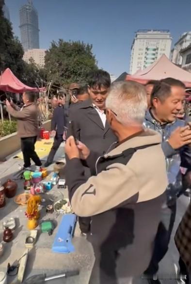 大衣哥朱之文现身徐州古玩市场,一现身就被众多粉丝包围,大衣哥朱之文对古玩很感兴趣