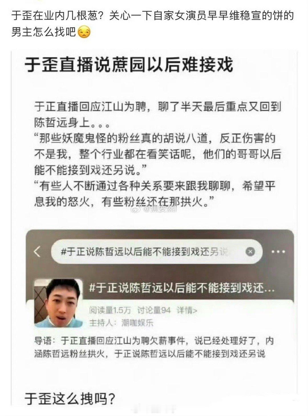 于正一开口,能得罪大半个内娱的人前前后后 嘴 了这么多艺人:陈哲远、祝绪丹、任嘉