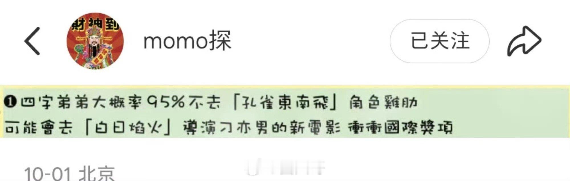 易烊千玺也太牛了吧!易烊千玺提名金鸡奖影帝,还没开奖。就传出易烊千玺的下部戏的好消息了,网传易烊千玺将与刁亦男合作,易烊千玺的 资 源 绝了吧!