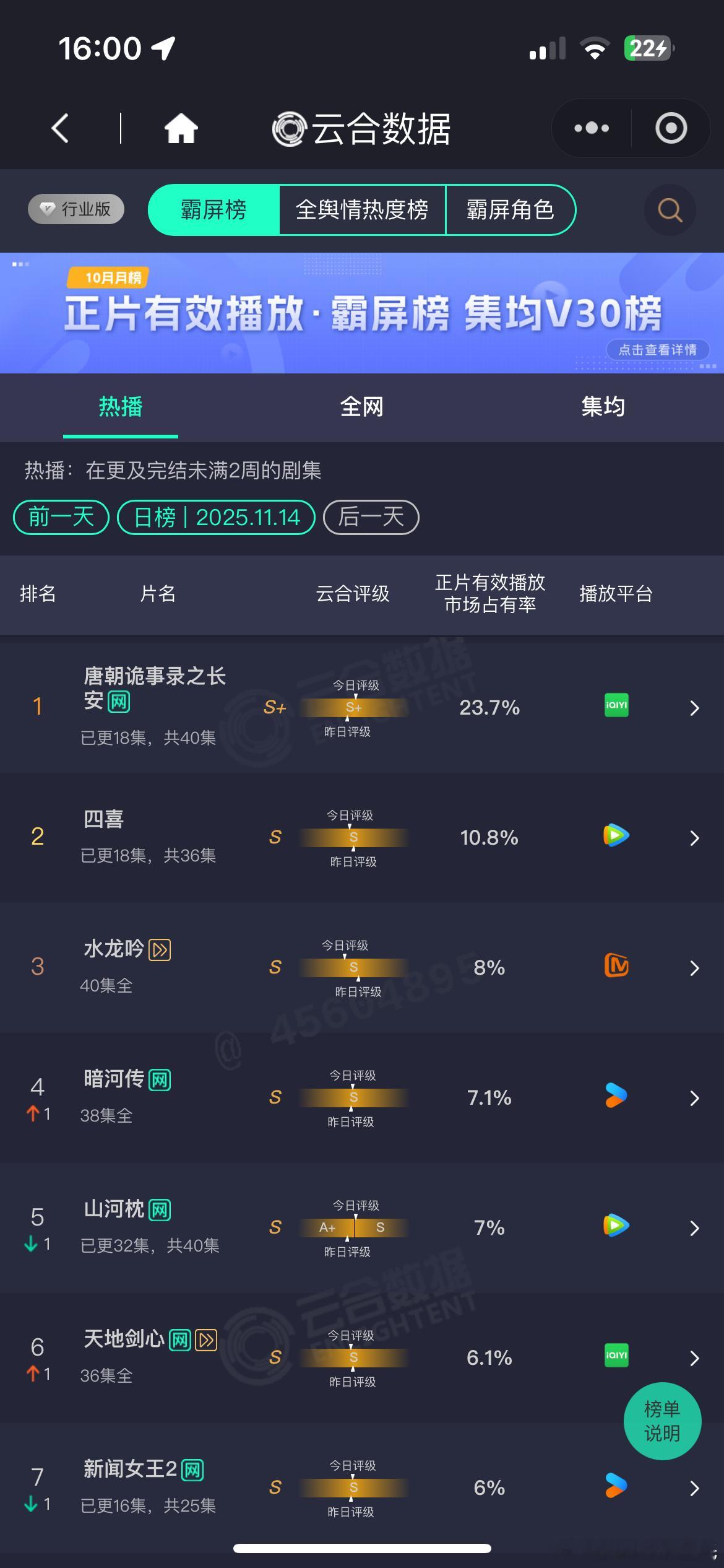 李沁、陈哲远云合集均v30固定,1854万,播放效果评级S+云合热播期集均已经破1900万,还未结束一笑和入青云都属于开播前大家觉得1500万保卫战,结果播到S+…尤其是在一众流量古装S+剧,最后播放效果都播成了S的对比下……