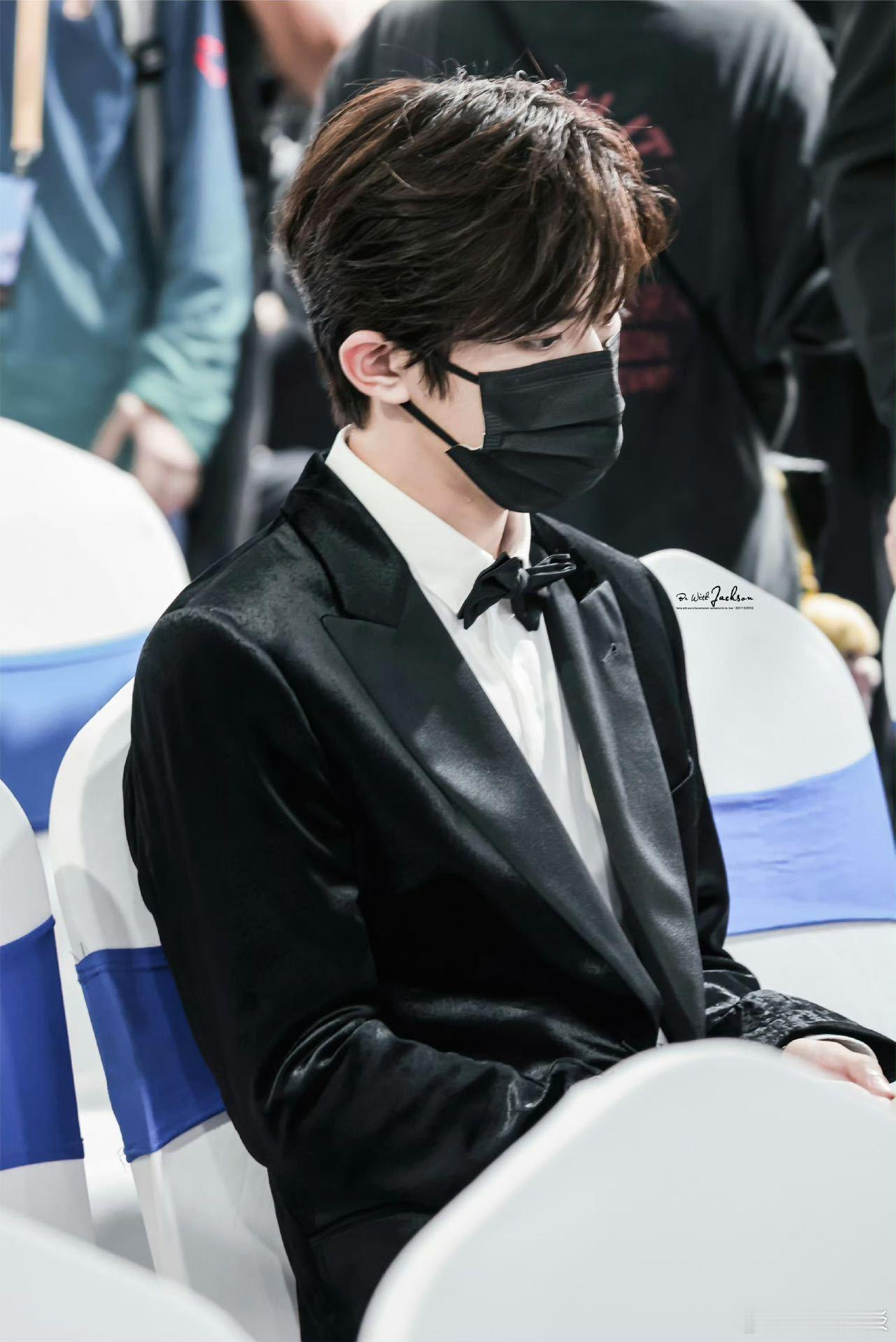 易烊千玺今天金鸡红毯造型惊艳到谁了我不说,白衬衫蝴蝶结好温柔,候场时一个人安安静静坐在那里,大气沉稳的气质在人群中脱颖而出