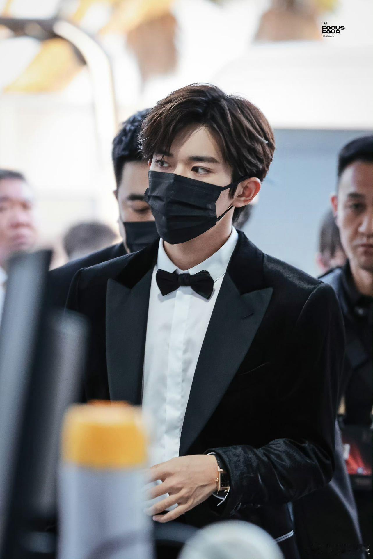 易烊千玺今天金鸡红毯造型惊艳到谁了我不说,白衬衫蝴蝶结好温柔,候场时一个人安安静
