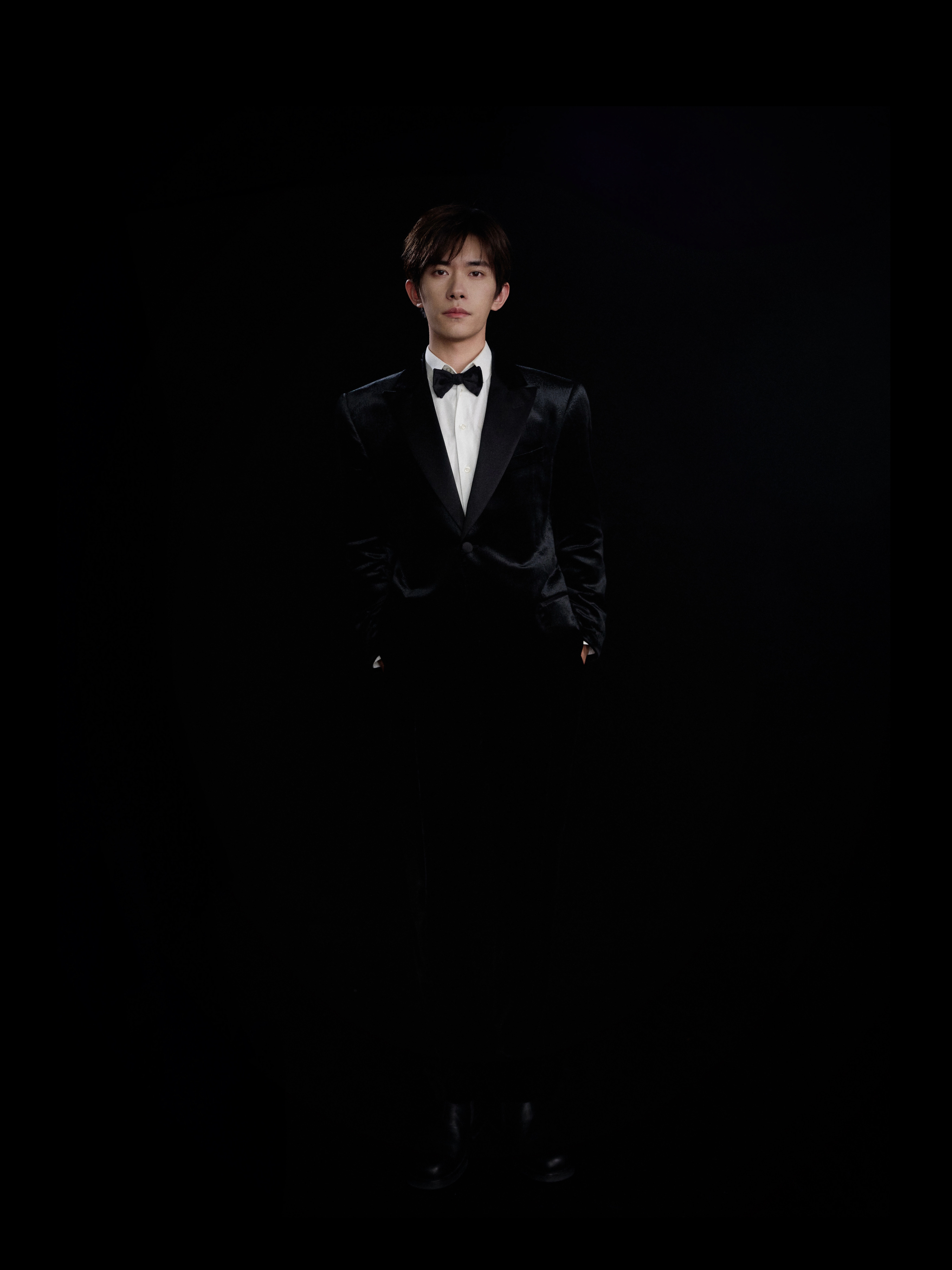 易烊千玺|金鸡百花电影节造型出图,身穿Emporio Armani戗驳领暗纹西装