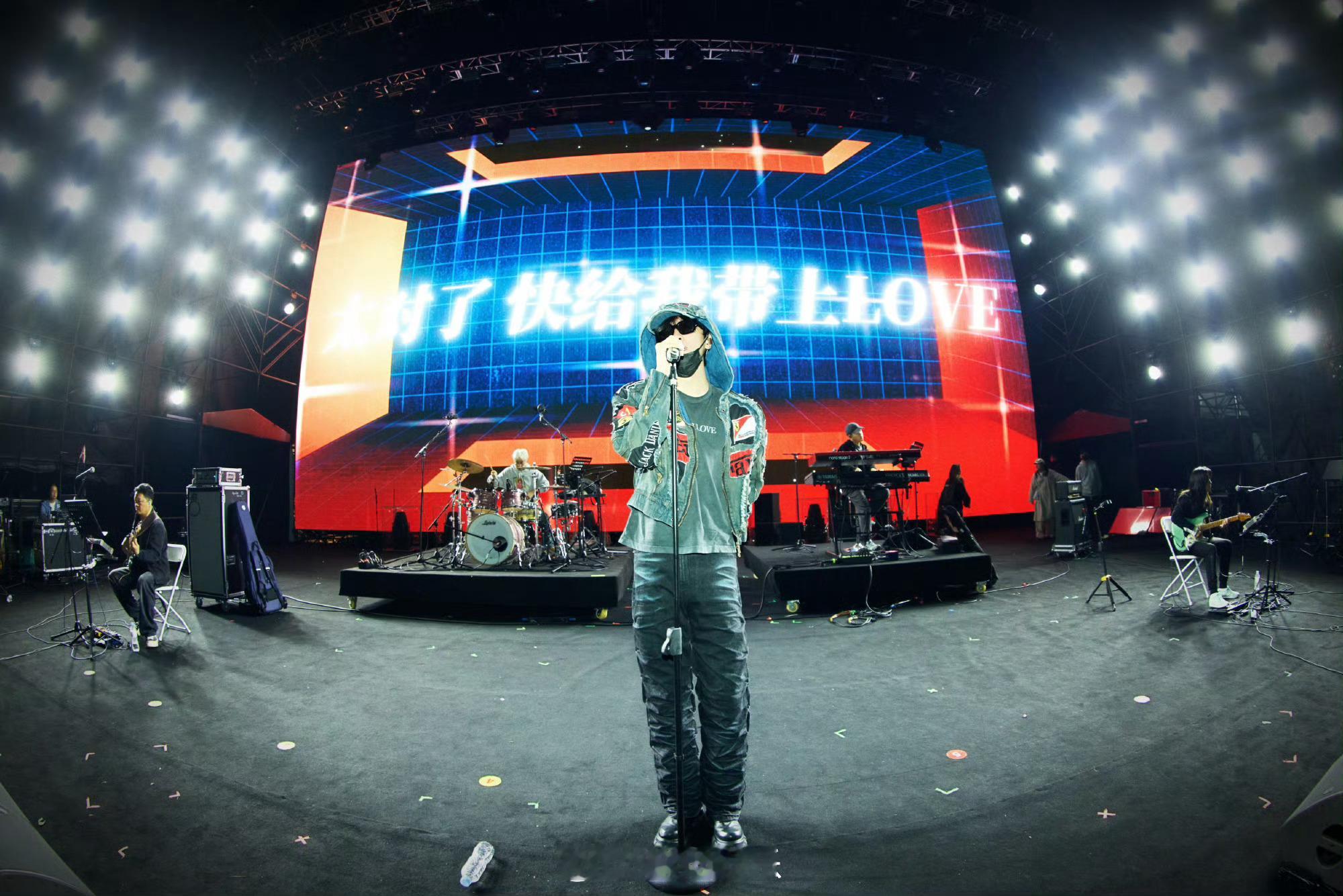 展轩Z纪元赣州巅峰音乐节彩排照更新,戴帽造型好潮好酷好腿长啊,燥候今晚舞台