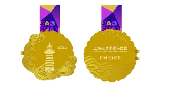 为此,完赛奖牌充分彰显宝山印记,正面以屹立于江海交汇处的吴淞口灯塔为核心,灯塔部分采用镂空设计,形成视觉窗口,引导视线延伸至中层,环绕的浪花与层叠水纹,既象征跑者挥洒的汗水与奔腾的激情,也呼应长江入海口百川汇流的壮阔景象。采用翻盖结构的奖牌,让跑者在开启瞬间感受到满满的仪式感,作为可佩戴的纪念,奖牌还采用可拆卸设计,可作为胸针、背包挂饰等日常配饰。