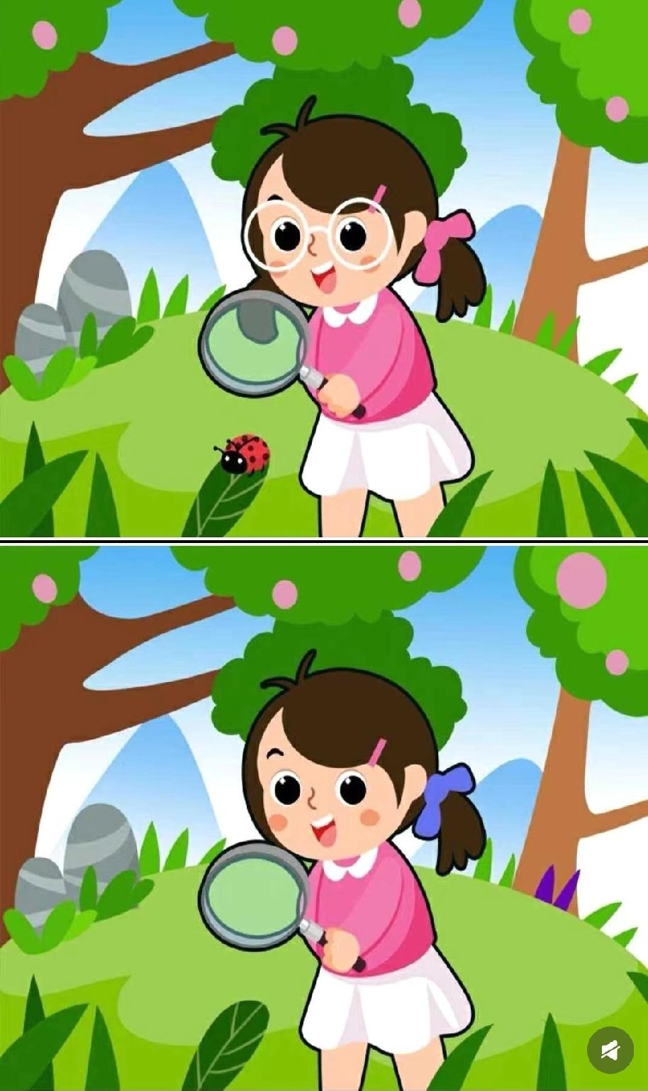这2张观察昆虫的图藏了3处不同!我看了3分钟才找全,你能10秒揪出1处吗?