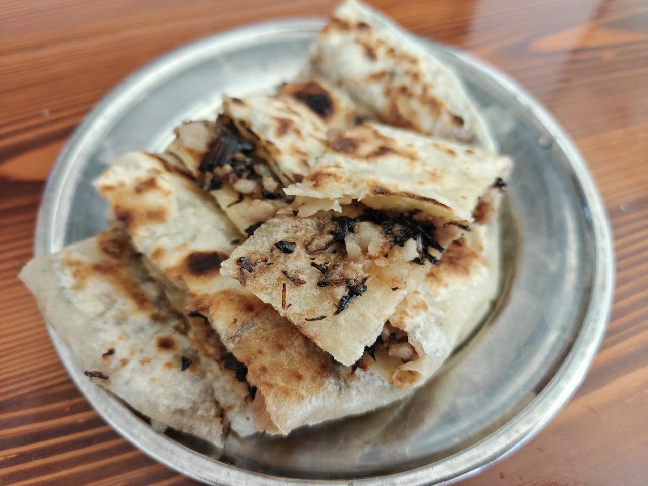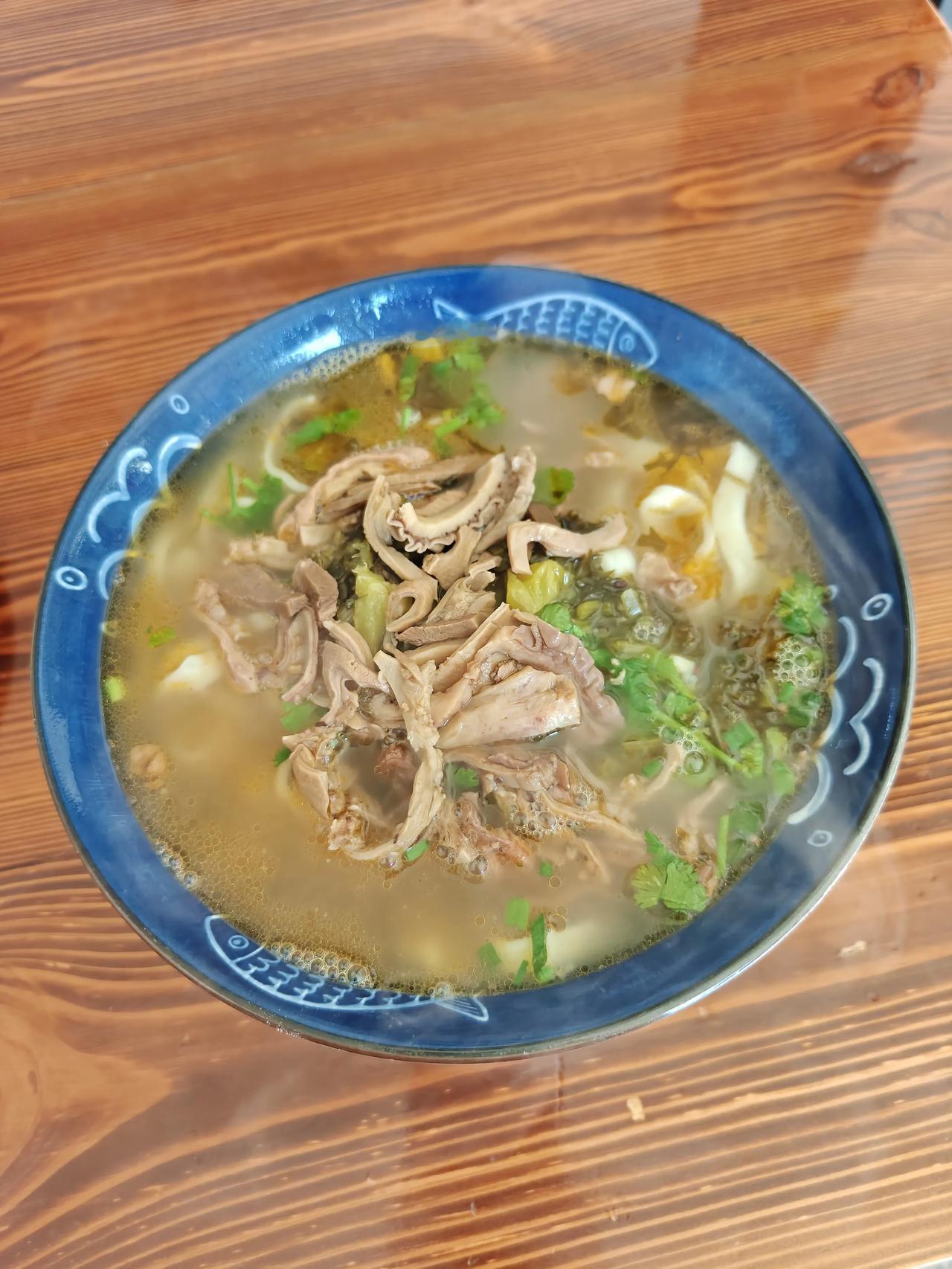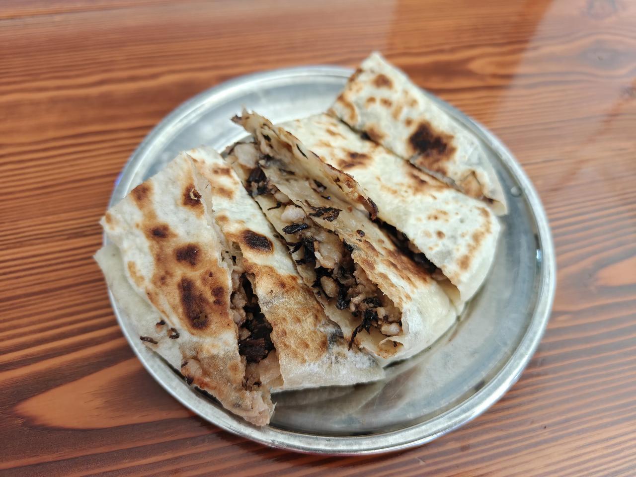 骆林喜第97场马拉松!骆林喜莅临浙江省金华市东阳市横店镇,参加2025横店马拉松,这是横店举办的第10场马拉松,又是骆林喜第97场马拉松,意义非凡。 中午在横店影视城附近的小餐馆吃饭:牛杂面、白米粥、肉麦饼。 据说肉麦饼是浙江省永康市的小吃美食,馅料是梅干菜,伴上剁碎的五花肉,皮料是面粉,其实就是烙饼,吃起美味。当地人以肉麦饼为主食,配上白米粥或红豆粥,简简单单又一餐。