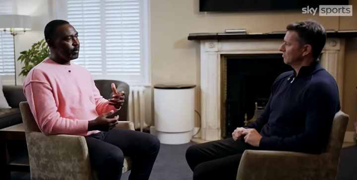 安迪·科尔:关于进球和他所做的事,我不太确定。他肯定名列前茅。但当你谈论最好的英超前锋时,那些进过球的英超前锋并不是以他这种方式踢球的。所以,你必须反过来想,然后说,“如果一支球队是围绕这个个体建立的,并且他们以这种方式踢球,他能进多少球?”所以,我的意思是,他名列前茅,但我不会坐着说他是英超联赛所见过的最好的前锋。我不能坐着那样说,因为我对在他之前,在其他时代进过球的那些家伙怀有太多的敬意。