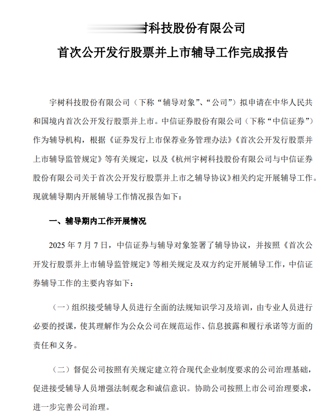 关于宇树科技股份有限公司首次公开发行股票并上市辅导工作完成报告截图
