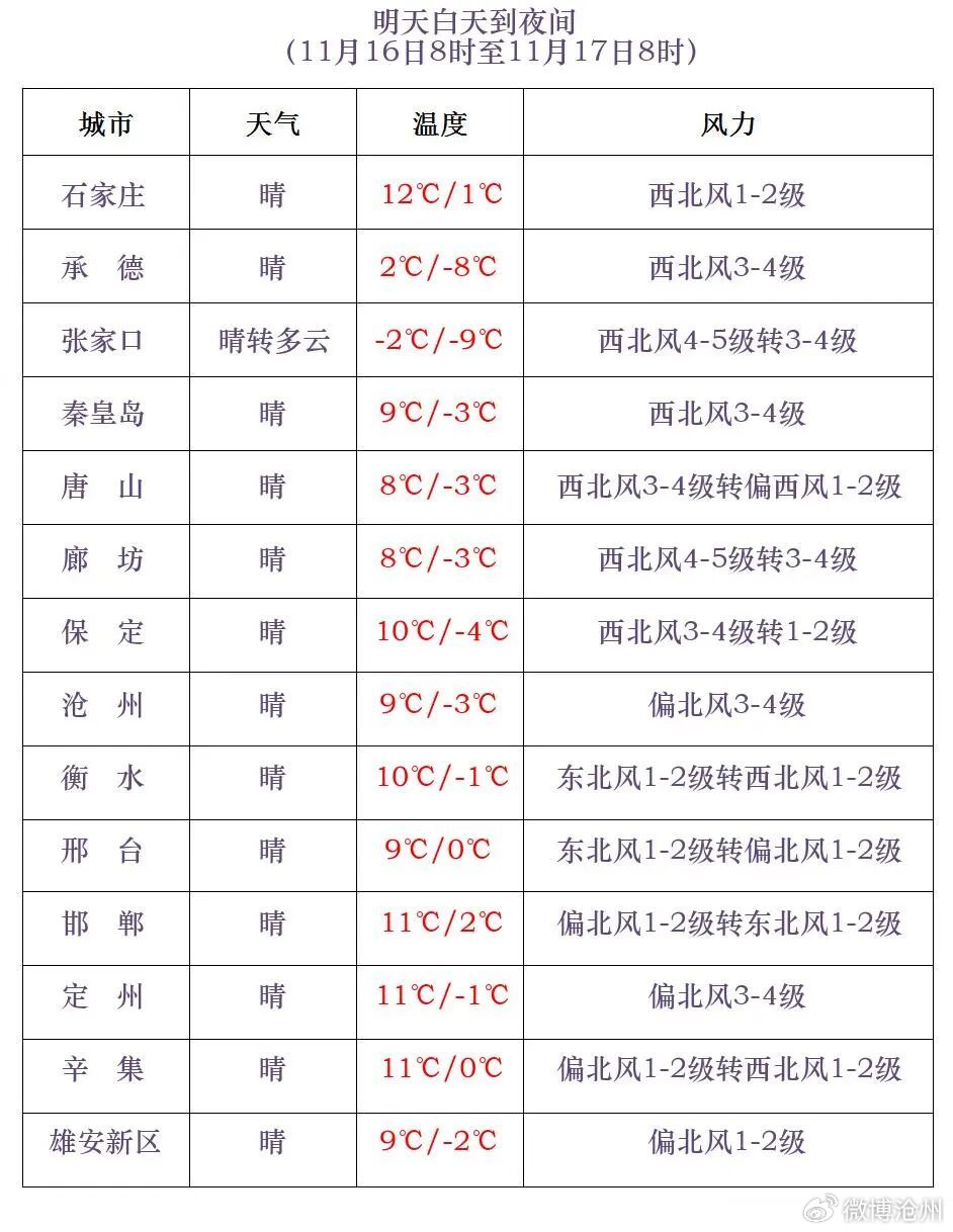 河北省大部地区16-17日气温持续下降,