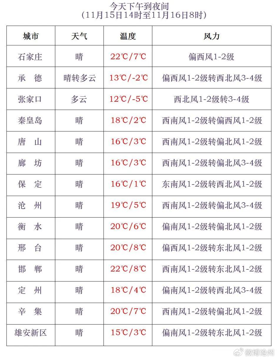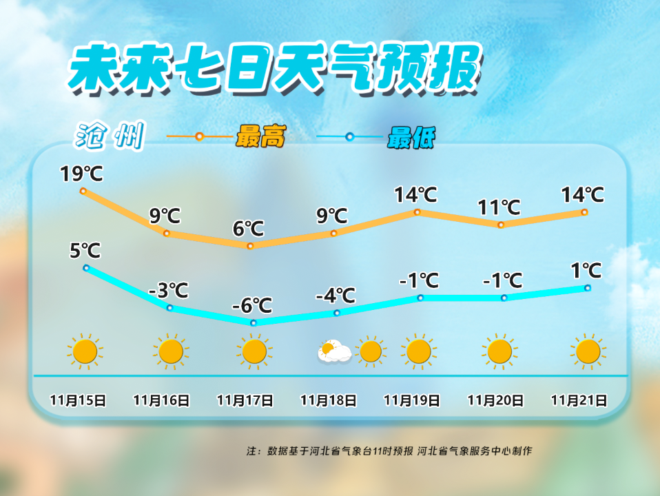 河北省气象台2025年11月15日11时发布天气预报:
