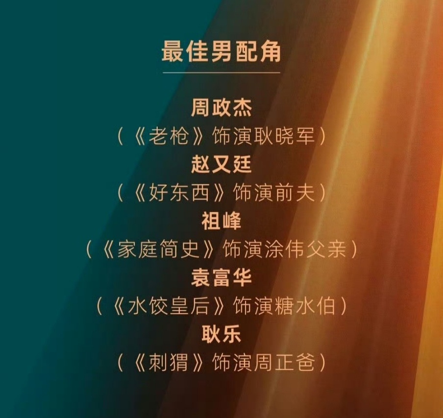 第38届金鸡奖最佳男配角:袁富华(《水饺皇后》饰演糖水伯)