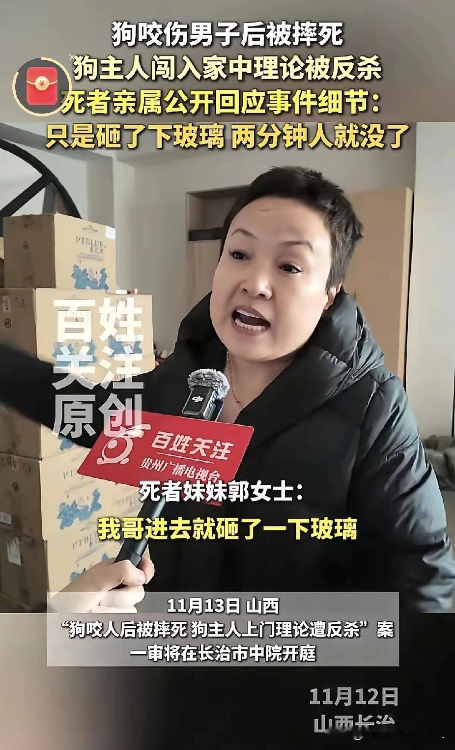 哦豁!郭女士没想到有监控!山西狗咬人引发的血案监控视频终于曝光了,第一波侵入者是郭某刚妻子赵某晖、赵某晖的妹夫韩某、赵某晖的外甥刘某伟!他们从周边捡来的砖块,往申家的玻璃砸,那个动作那个架势,看着就不得了。 监控画面拍得清清楚楚,几个人来来回回砸玻璃折腾了五六分钟,根本不是郭家妹妹轻描淡写说的“只砸了一下”。砖头砸在玻璃上的噼里啪啦声,隔着屏幕都让人心里发毛。申家三口人当时缩在厨房里,听着大门被踹开的声音,那种绝望想想就揪心。五次报警电话都没等来救援,最后只能靠自己拼命。 这事儿最讽刺的是郭家妹妹的说法被监控打了个措手不及。她对着媒体一口咬定“就两分钟”、“没打人”,可视频里又是砸玻璃又是踹门,还有“今晚弄死你们”的叫骂。法律讲究证据说话,现在铁证摆在面前,再多的辩解都显得苍白无力。 悲剧本来有无数次刹车的机会。狗咬人之后要是郭家肯去派出所调解,而不是甩句“等着接打架电话吧”;要是砸门时警察能及时赶到;要是申父被围殴时窗台上没有那把刀……可现实没有要是,每个环节的缺失都把双方往绝路上推。 现在法庭上争的焦点是申父捅那几刀算不算防卫过当。检方觉得对方没动利器,你动刀就要负责;辩护律师说九个人冲进你家,黑灯瞎火被打得鼻青脸肿,哪还顾得上捅几刀。这事儿搁谁身上都是生死关头,哪还能冷静地拿捏分寸? 一场邻里纠纷闹出人命,两个家庭都毁了。郭家死了顶梁柱,申家父亲可能面临牢狱之灾,说到底没有赢家。狗链没拴紧是导火索,但真正炸掉整个局面的,是双方谁也不肯退那一步的戾气。 各位读者你们怎么看?欢迎在评论区讨论。