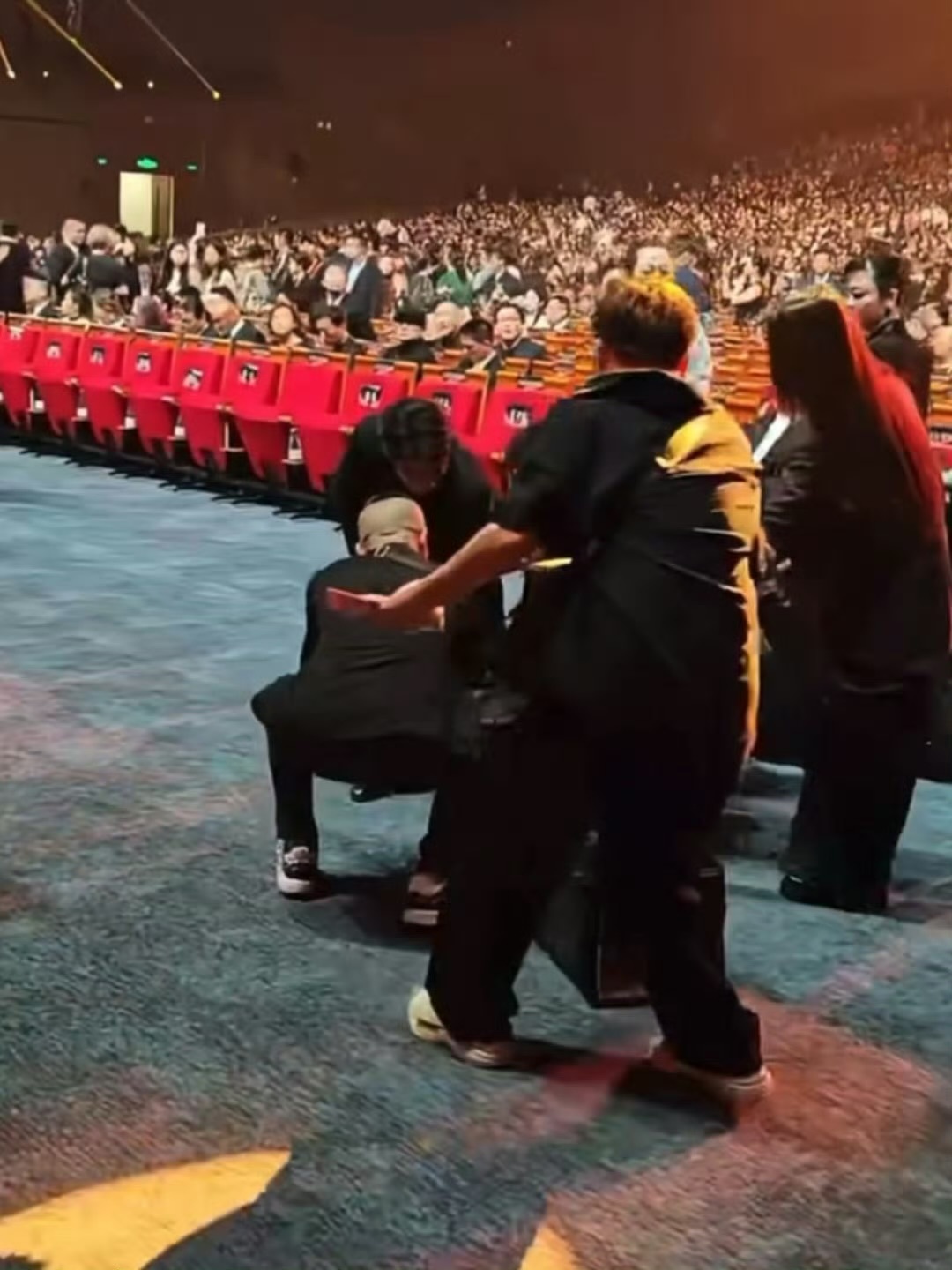 扶完金鸡奖杯再帮宋佳摘姓名贴。朱一龙完全是热心市民来的哈哈哈哈