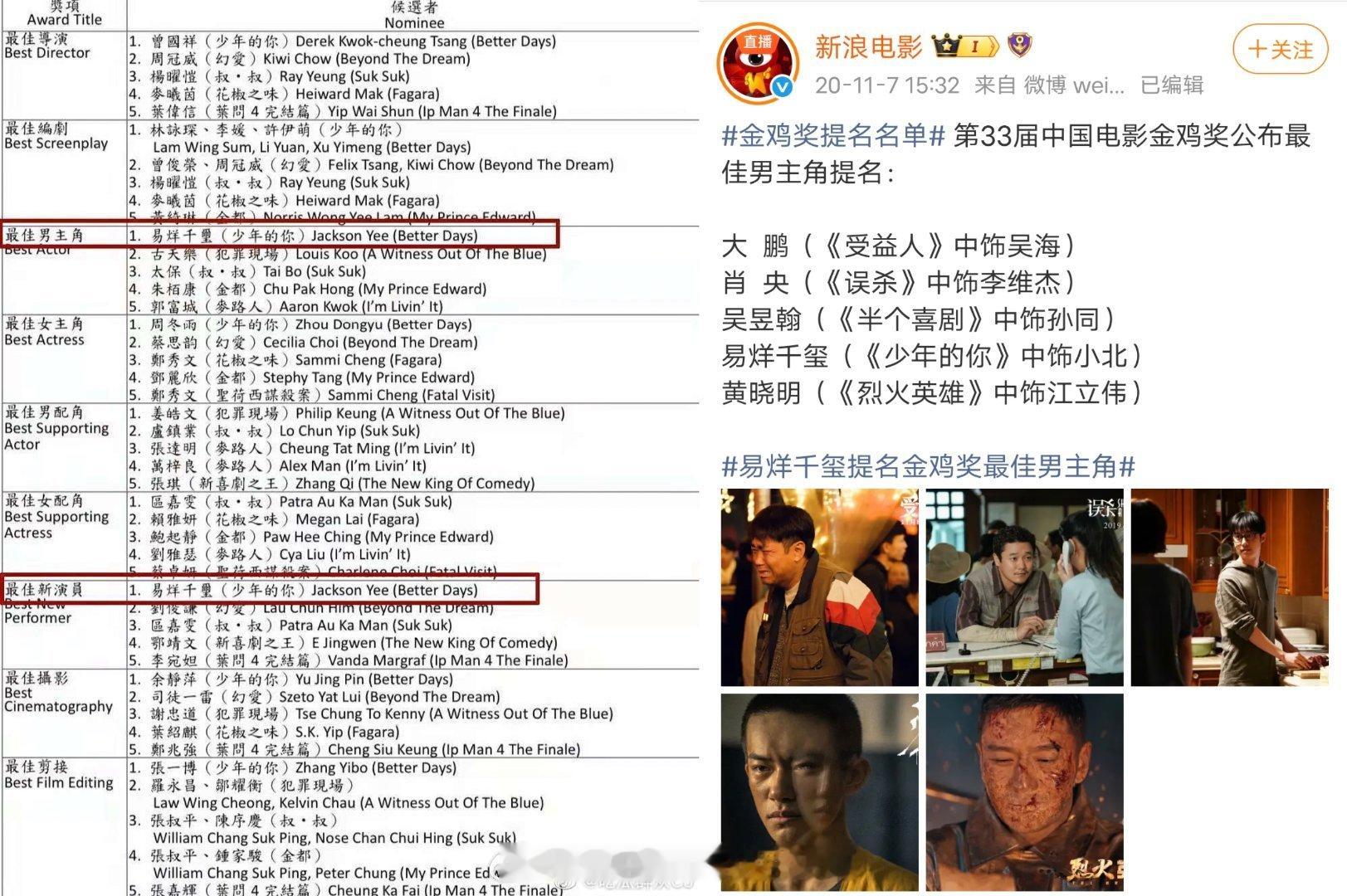 其实易烊千玺《少年的你》就该拿影帝了吧,金像奖败给70岁的香港演员,金鸡奖败给黄
