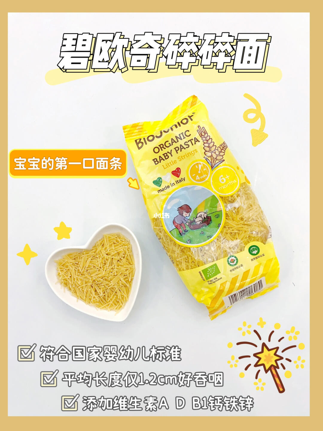 🌟我们家从小吃的就是碧欧奇碎碎面,欧盟双重有机认证,无盐配方,符合国家婴幼儿食品标准哦‼️平均长度为 1.2cm,可以一口吞咽。而且几分钟就能煮熟还不易坨,快手又营养,适合作为宝宝初次添加的面条。