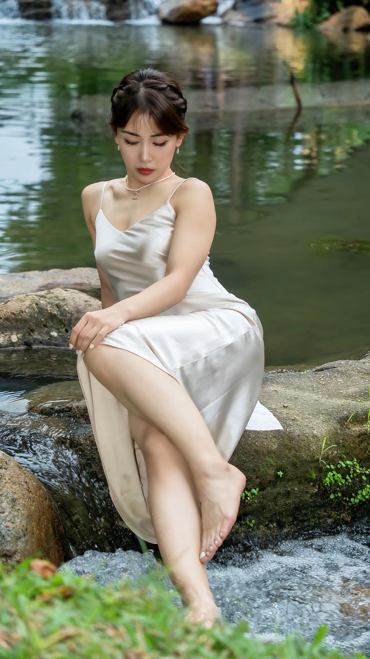 你从山涧走过 傍晚像一场无声的默片 林涧的风裹着草木香 扎染长裙在晚风中轻扬 似将晚霞揉碎披于身 我踩在浸凉的石上 裙角蹭过苔藓的软 光斑漏下来时 虹影恰好吻过脚踝 发梢沾了叶尖的光 转身时听见风掠过枝桠 山涧是偷藏的春 把碎云、流泉和我,揉进青绿里,酿成一帧浅粉色的梦