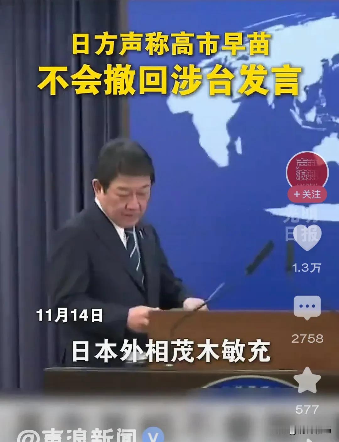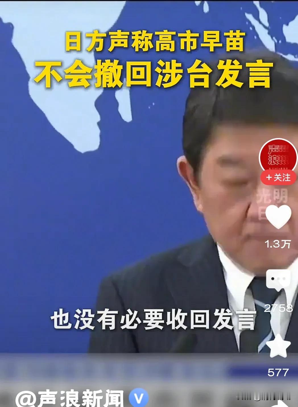 日方声称高市早苗不会撤回涉台发言高市早苗“嘴硬”背后,是东京某些人把台湾当牌打的赌徒心理:说“不撤回”容易,真要点燃导火索,日本自卫队可没有“台独”逃生舱。别拿“言论自由”包装分裂中国的毒丸,历史旧账还没清,又想在新中国红线前蹦迪?先问广岛长崎同不同意,再问问旁边的“美日同盟”想不想一起领快递。