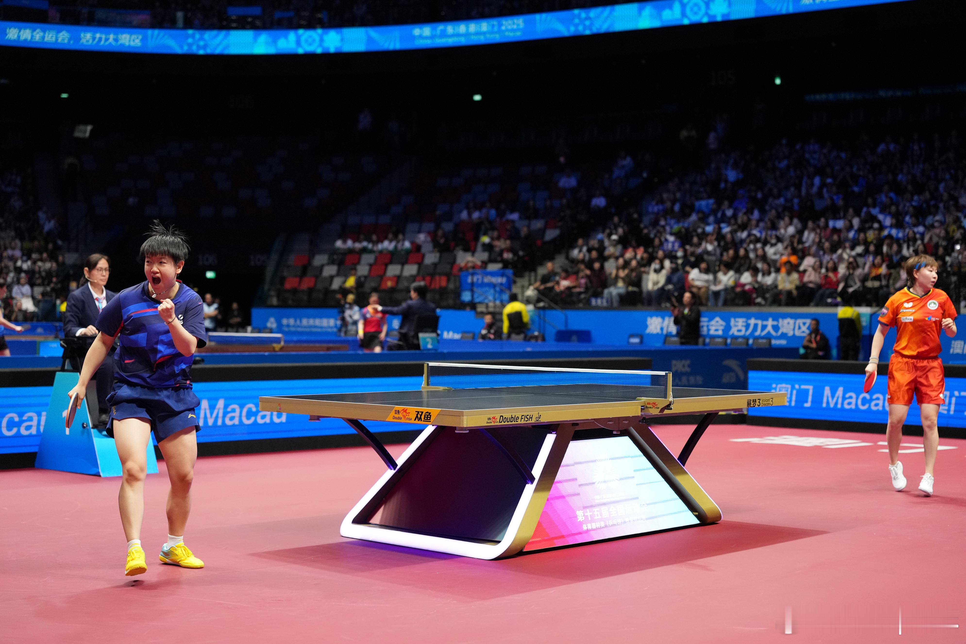 11月15日,在澳门进行的第十五届全国运动会乒乓球女子单打半决赛中,河北队选手 4比1战胜澳门队选手 ,晋级决赛。