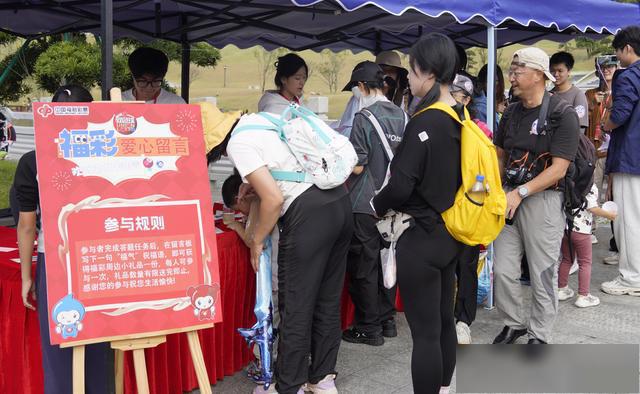 为深化公益传播,摊位同步设置“福彩留言墙”,邀请参与者写下爱心留言与祝福,完成后可领取福彩定制笔、书签、小夜灯、驱蚊水等专属小礼品。工作人员与志愿者还在现场答疑解惑,详解福彩公益金用途、“为社会造福、为生活添彩”的使命,让“责任福彩”理念通过面对面交流深入人心。